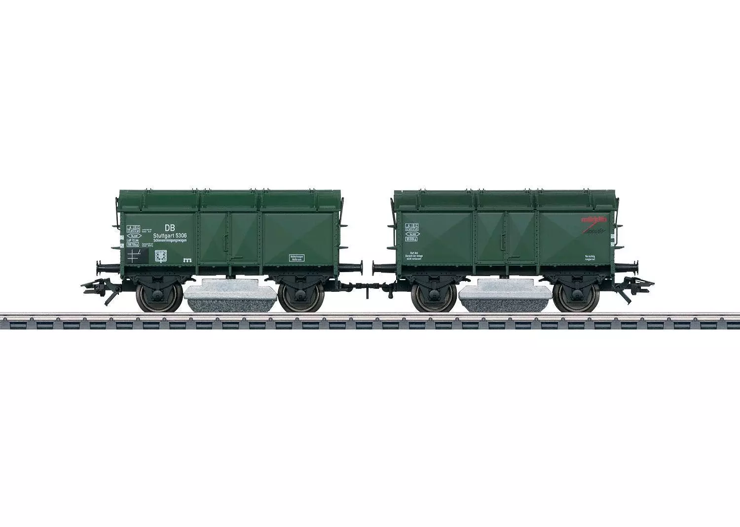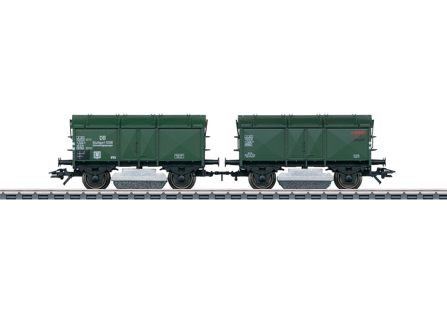 Klappdeckelwagen-Paar KK 15, fest gekuppelt, eingesetzt als Bahndienstfahrzeug. Gestaltung der Epoche III.