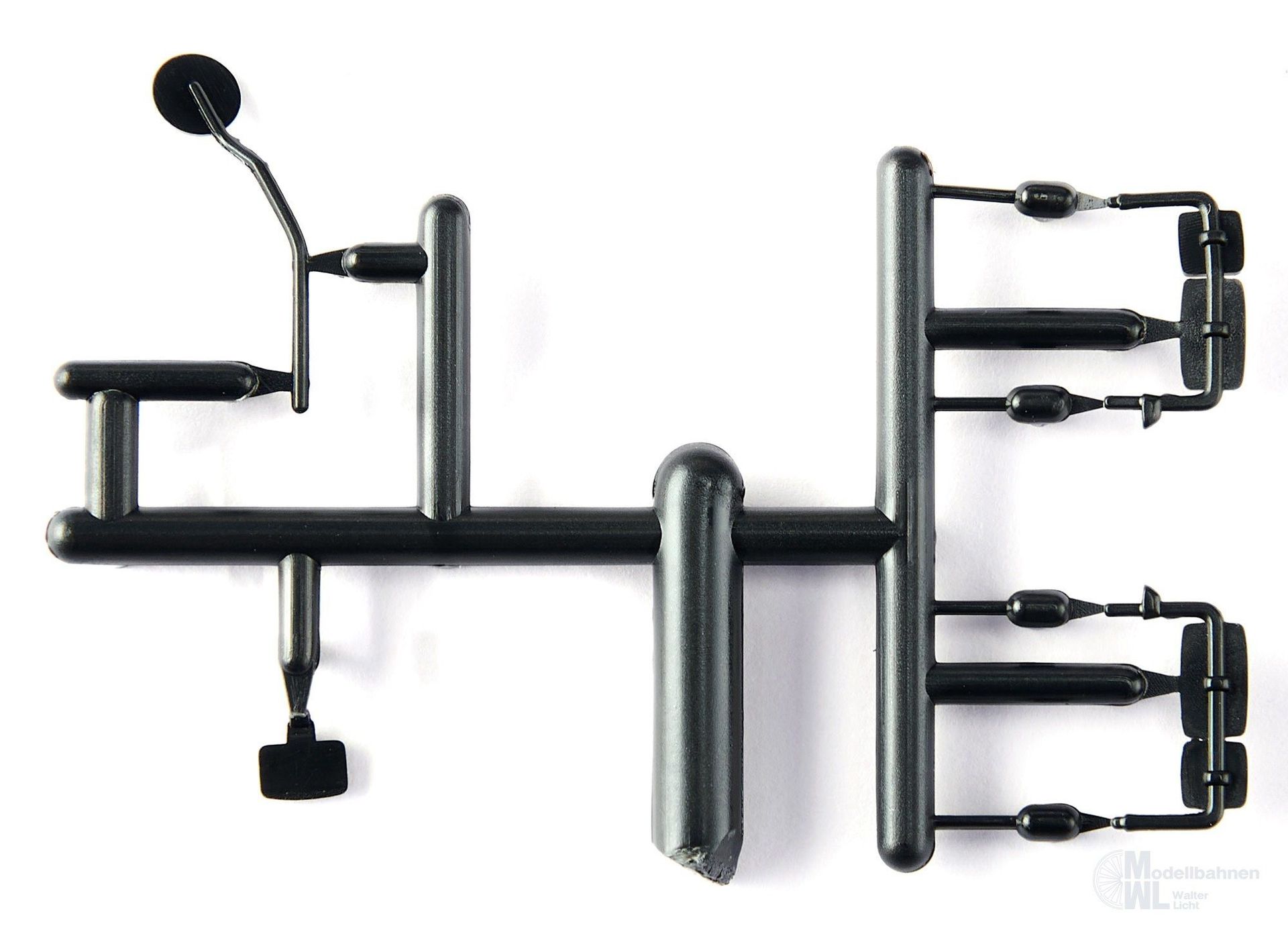 Der kompakte Leicht-Unimog im Forsteinsatz Schon am 23. Oktober 2007 lief der Unimog U 20, der schon auf der IAA 2006 als „Leichter-Unimog-Geräteträger“ (LUG) vorgestellt worden war, vom Band. Es sollte ein ungewöhnlicher Unimog werden und auch auf Dauer bleiben. Denn das Fahrzeug basierte auf einem verkürzten Fahrgestell des damaligen U 300, während das Import-Fahrerhaus des Accelo, eines Verteiler-Lkw aus brasilianischer Fertigung, aufgesetzt wurde. Die Fahrerhäuser wurden gleich zu Produktionsbeginn in Brasilien komplett, inklusive Innenausstattung, gefertigt und zur Montage nach Wörth geliefert. Das WIKING-Modell zeigt seit seiner Modellpremiere auf der Nürnberger Spielwarenmesse 2009 den authentischen Charakter des Universaltalents. Das Vorbild des U 20 erscheint in der 87-fachen Miniaturisierung kompakter als die Vorgängergeneration und ist dennoch ein Vielzweckfahrzeug, eben ein Geräteträger für jeden Einsatz geblieben. Dank des kürzeren Radstandes ist er wendiger als jeder Allrad-Lkw. So passt auch das kompakte Frontlenker-Fahrerhaus mit perfekter Rundumsicht ins bewährte Fahrzeugkonzept. Fahrerhaus und Pritsche moosgrün, Inneneinrichtung mit Lenkrad schwarz. Felge ebenfalls schwarz. Kühlergrill, Frontbügel, Kardanteil, Auspuff, Aggregat, Motorblock, Fahrgestell, Kotflügel vorn und hinten, Anhängerkupplung, Zusatzscheinwerfer sowie Außen-, Zusatz- bzw. Seitenspiegeln, Zwischenrahmen und Ladekran verkehrsgrau. Mercedes Benz-Stern und Schriftzug Unimog silber. Seitlicher Schriftzug „U 20“ auf den Türen. Blinker orange.