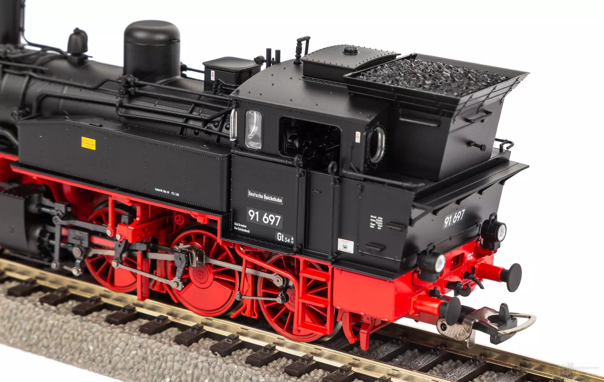 Formneuheit | Digitale Schaltung von Führerstandbeleuchtung, Fahrwerksbeleuchtung und Feuerbüchsflackern durch Nachrüstung eines Digitaldecoders | Erhöhter Kohlenkasten | detaillierte Inneneinrichtung | Zahlreiche freistehende Bauteile | originalgetreue Lampen und Leitungen | feine Zinkdruckguss-Räder | filigranes Bremsgestänge