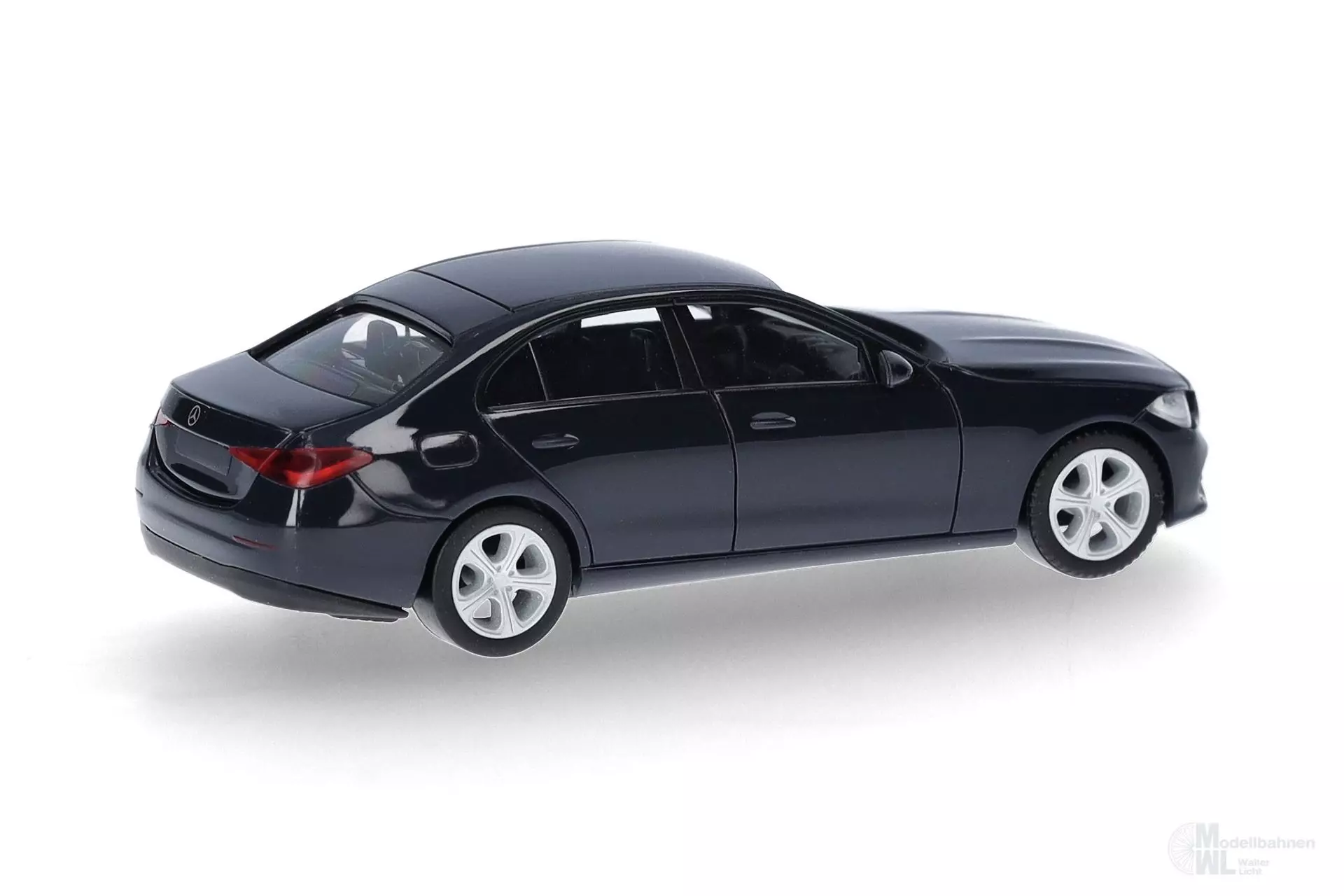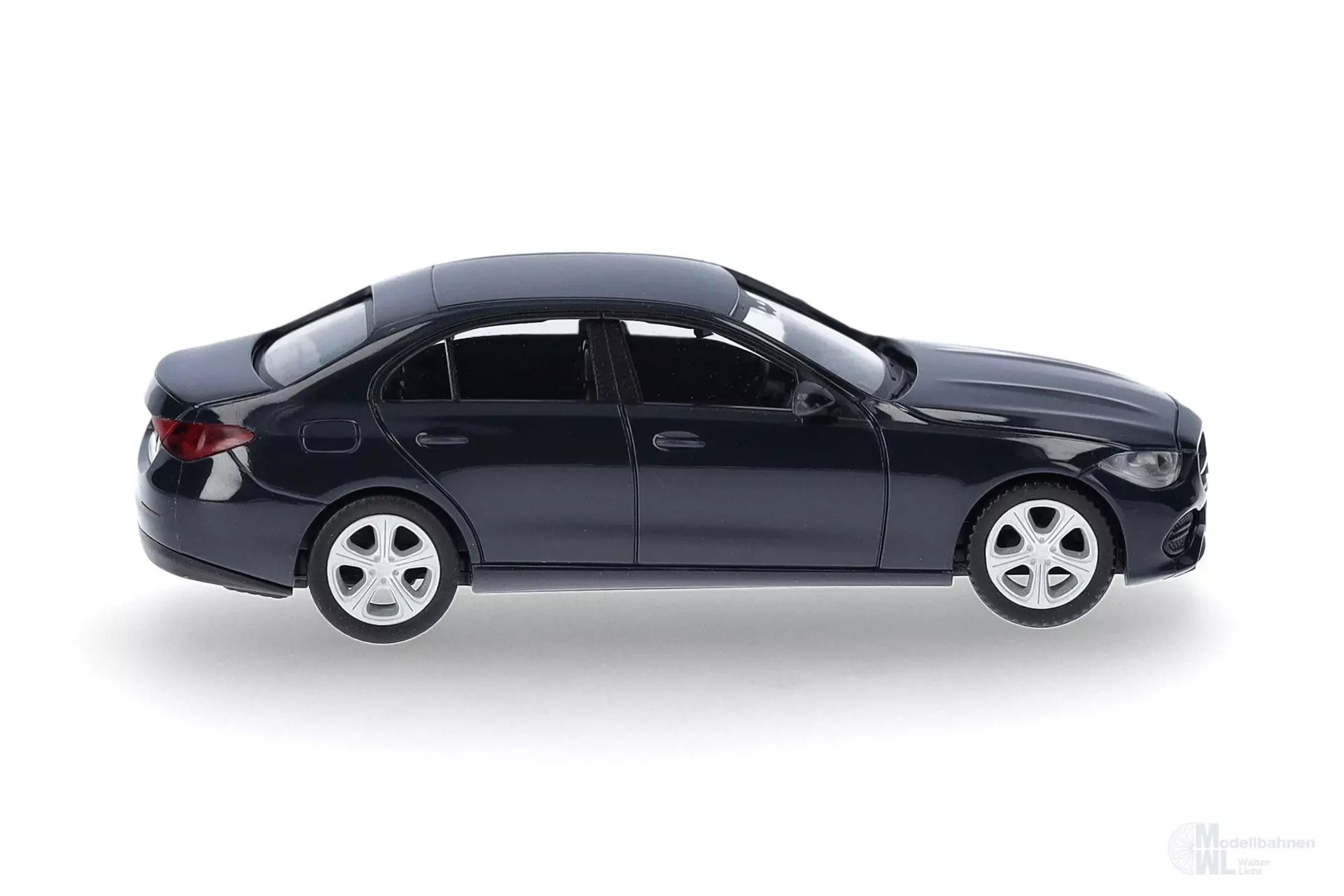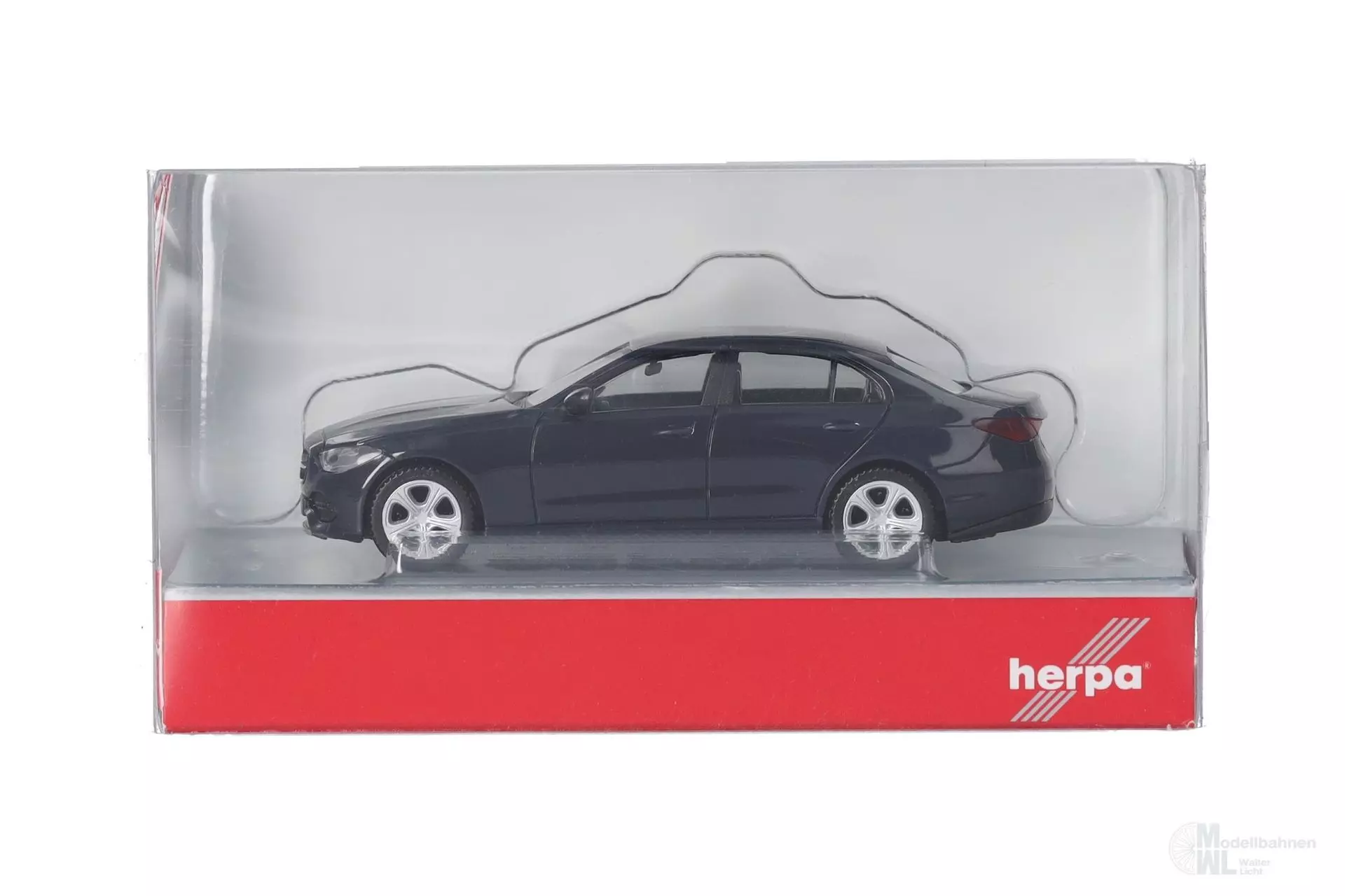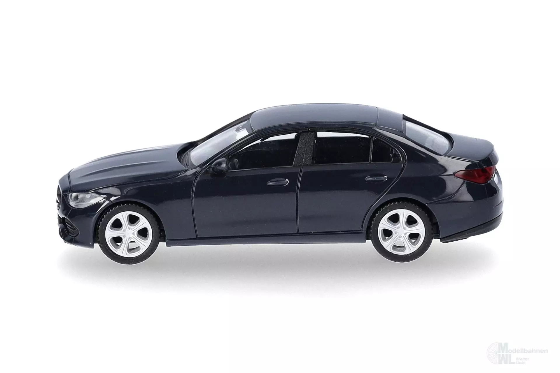 Die Mercedes-Benz C-Klasse Elegance Limousine mit dunkelblauer Karosserie wird für die Herpa-Neuheiten neu gefertigt.