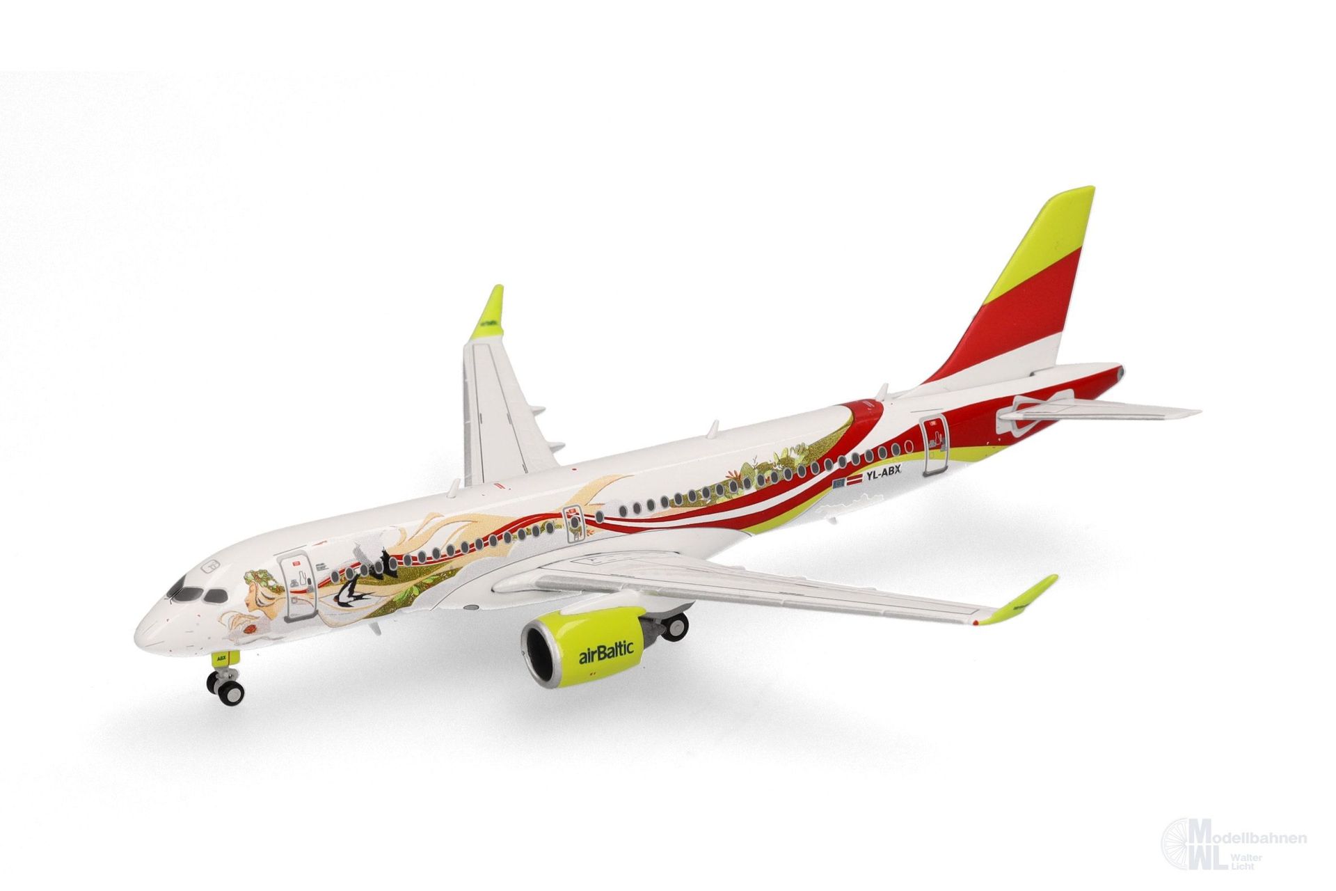 Mit einem außergewöhnlichem Design, das von der Öffentlichkeit aus mehr als 800 Einsendungen aus der ganzen Welt ausgewählt wurde, feiert airBaltic den Meilenstein zur Indienststellung der des 50. Airbus A220-300. Die Lackierung repräsentiert die drei baltischen Staaten – Lettland, Estland und Litauen. Das Design ist von der Natur und den Menschen des Baltikums inspiriert. Es zeigt eine durch die Wolken schwebende Frau mit einer traditionellen Blumenkrone auf dem Kopf, sowie Symbolen jedes baltischen Staates: den Marienkäfer für Lettland, die Schwalbe für Estland und den Storch für Litauen.