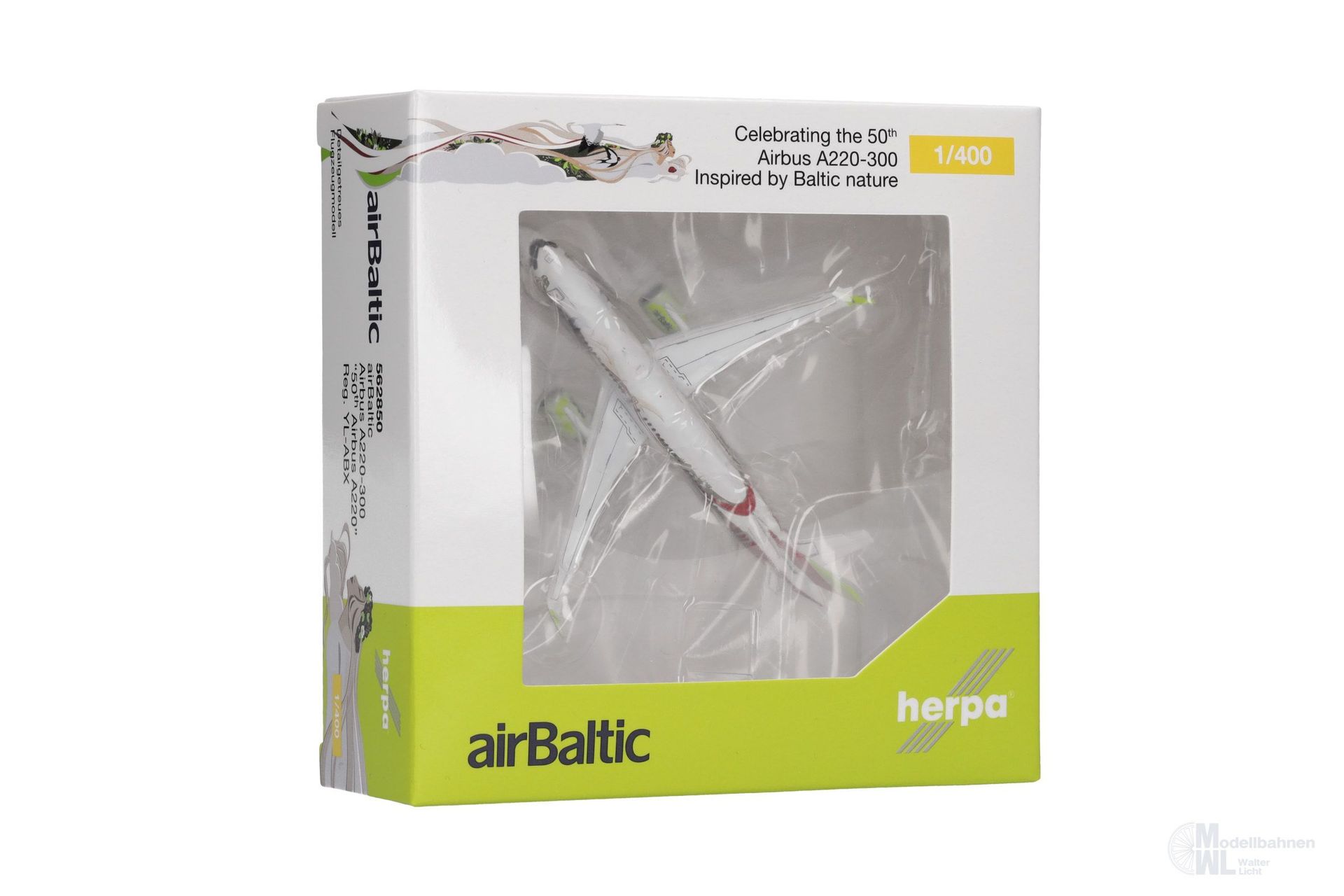 Produktinformationen "Herpa 562850 - Airbus A220-300 airBaltic 50th A220 1:400"