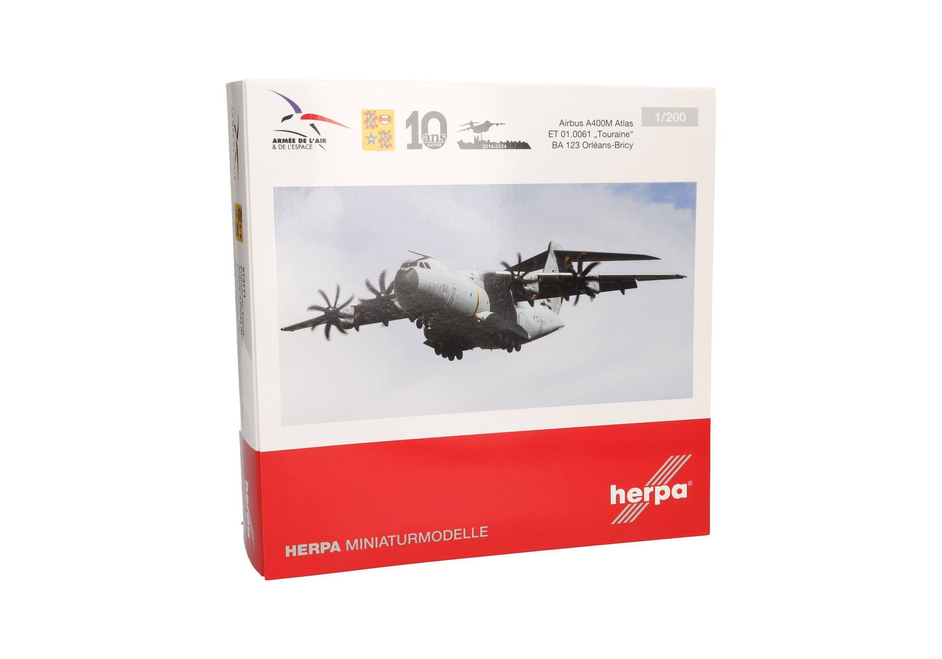 Produktinformationen "Herpa 573771 - Airbus A400M French AF 1/61 -10 Years 1:200"