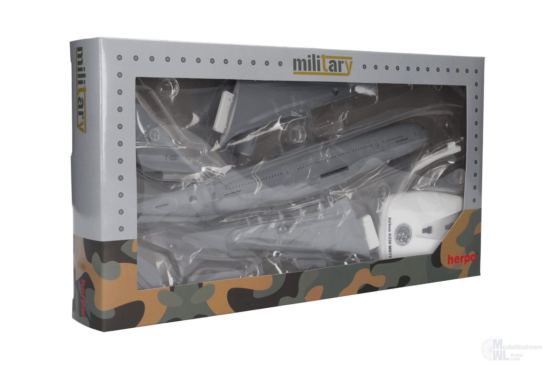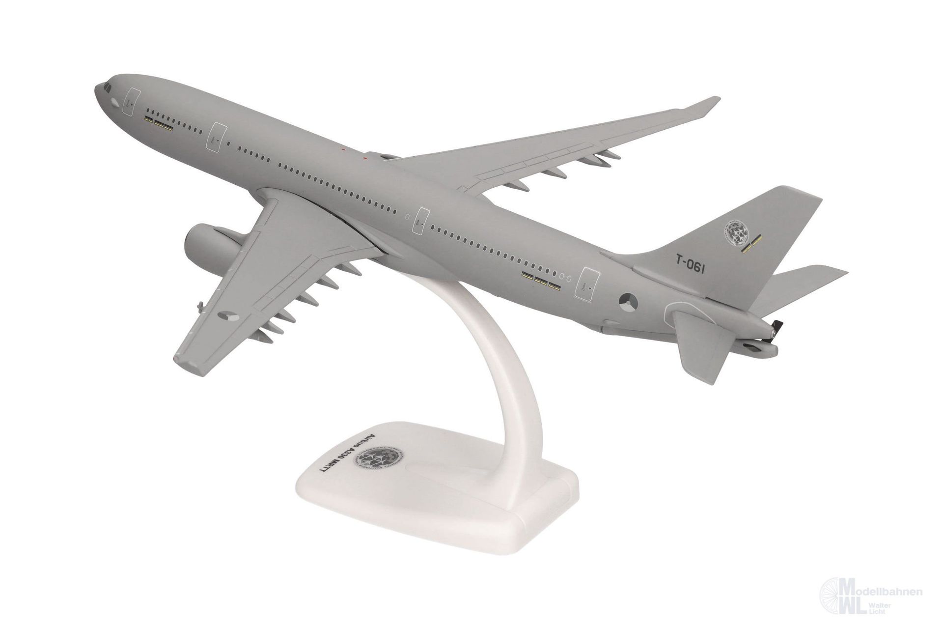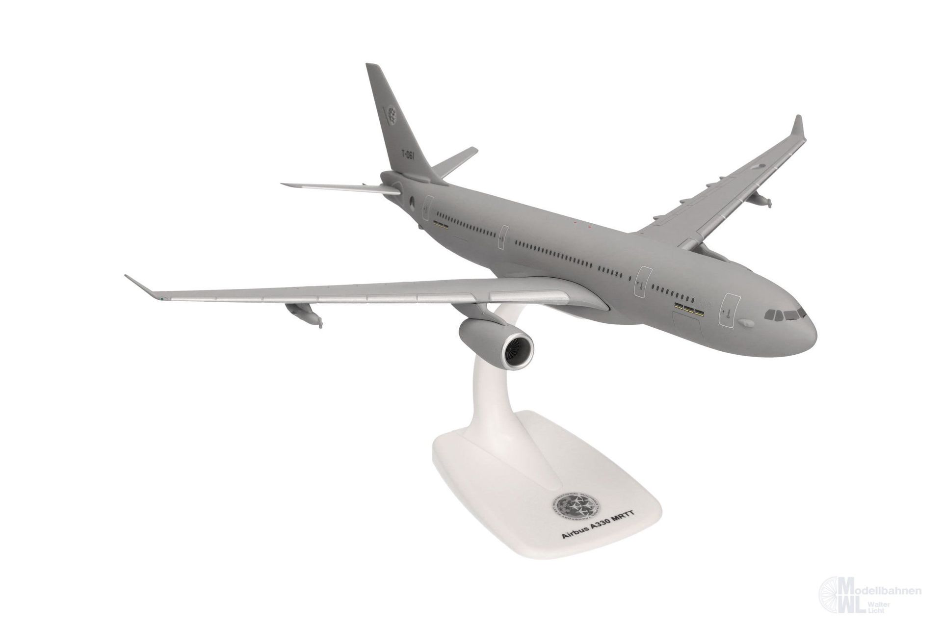 Die A330 MRTT ist ein sehr vielseitiges Flugzeug, das sowohl für die Luftbetankung, die medizinische Evakuierung, als auch für den Transport von Fracht und Personal geeignet ist. T-061 war das achte von derzeit 10 Flugzeugen, die an die Multinational Multi-Role Tanker Transport Fleet (MMF) der NATO ausgeliefert wurden. Alle Tankflugzeuge sind als Teil der niederländischen Streitkräfte registriert und werden vom Luftwaffenstützpunkt Eindhoven aus eingesetzt. Die derzeit sechs teilnehmenden Nationen sind: Belgien, Deutschland, Luxemburg, die Niederlande, Norwegen und Tschechien. Dänemark hat seinen Beitritt zur MMF signalisiert und plant den Kauf von zwei weiteren A330 MRTT für diesen erfolgreichen multinationalen Flugzeugpool. Neben den Schlauchbehältern auf der Unterseite der Tragflächen, erscheint diese Formneuheit mit dem Tankausleger am Heck, welches bei diesem 1:200er Modell in zwei Positionen dargestellt werden kann.
