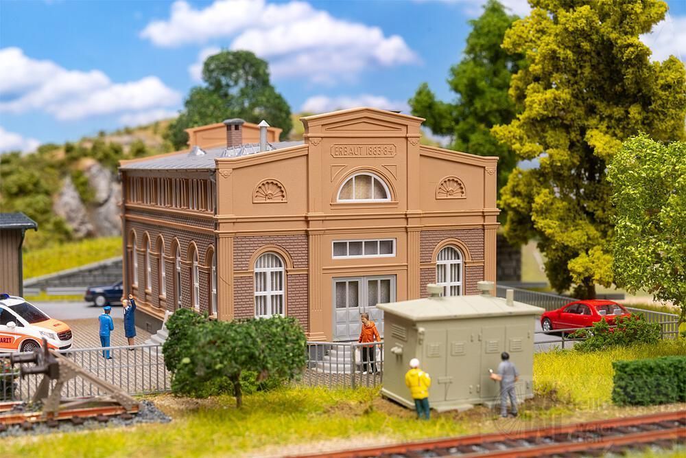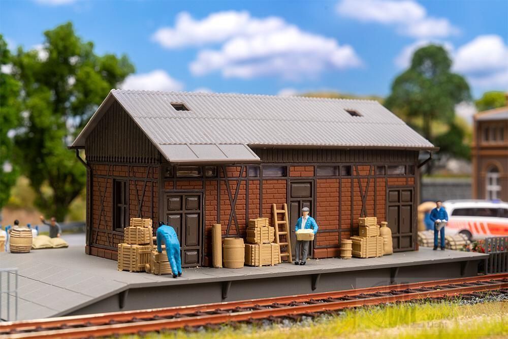 Dieses Aktions-Set verwandelt jeden Bahnhof in einen authentischen Güterumschlagplatz! Das sandfarbene, gemauerte Verwaltungsgebäude sorgt für Ordnung im Betriebsablauf, während der Güterschuppen mit roten Ziegelmauern als Zwischenlager für die Ware dient. Eine schlichte Holzhalle, ein Trafohäuschen und eine Dieseltankstelle runden die Szene ab – perfekt für stimmungsvolle Logistik in Miniatur.