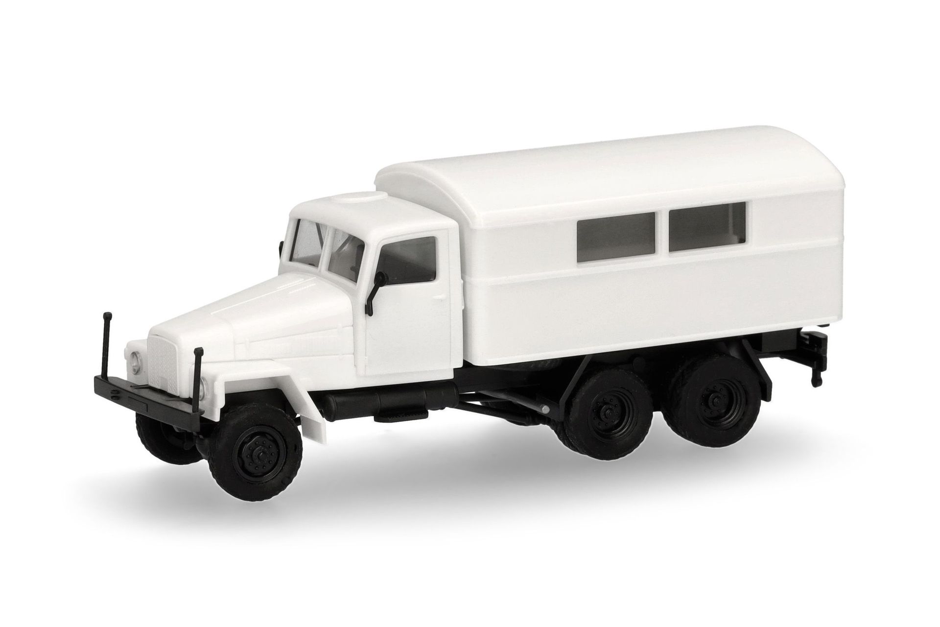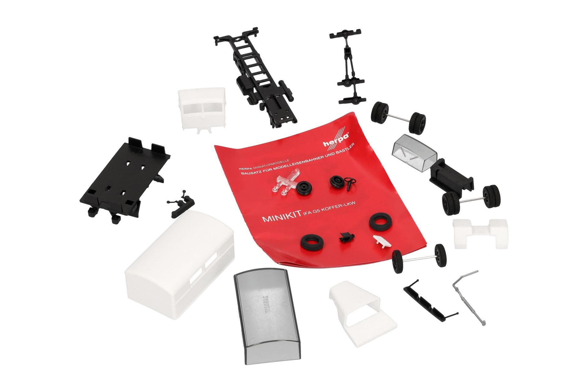 Mit Kofferaufbau wird der IFA G5 in weißer Farbgebung und schwarzem Chassis für das Herpa-Programm der Minikit-Bausätze angeboten.