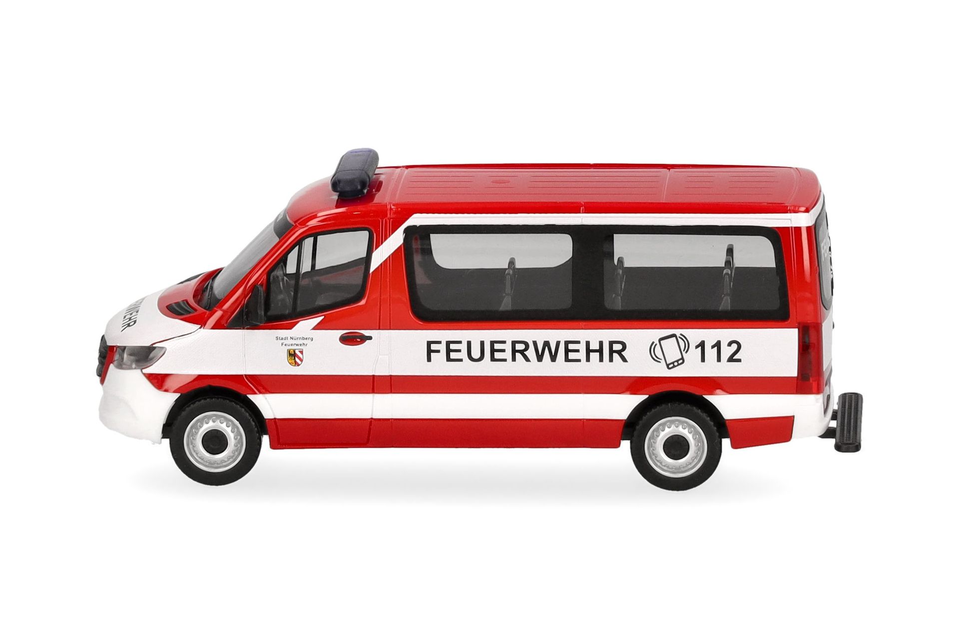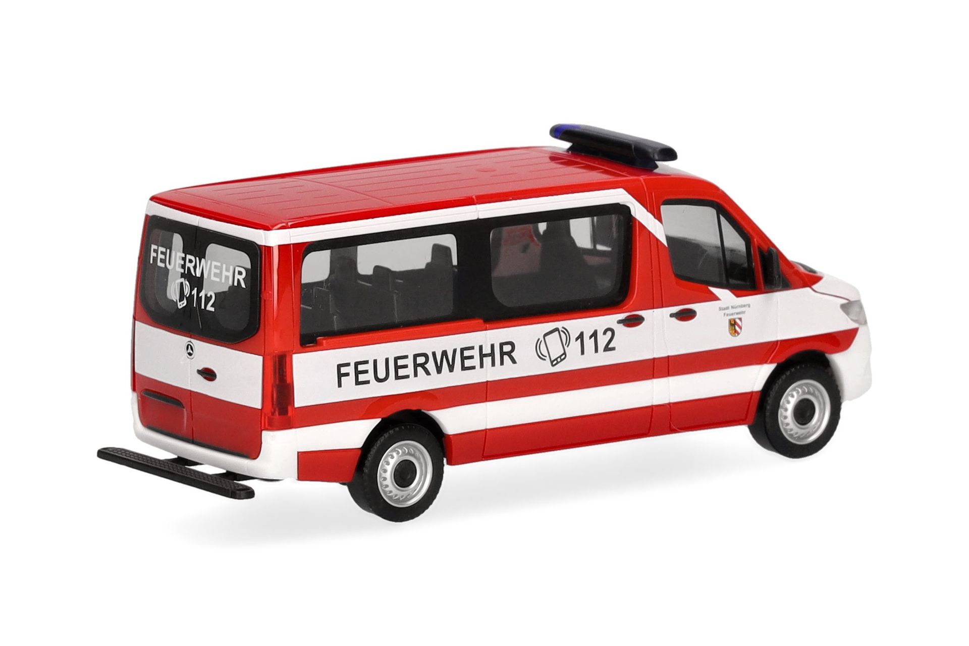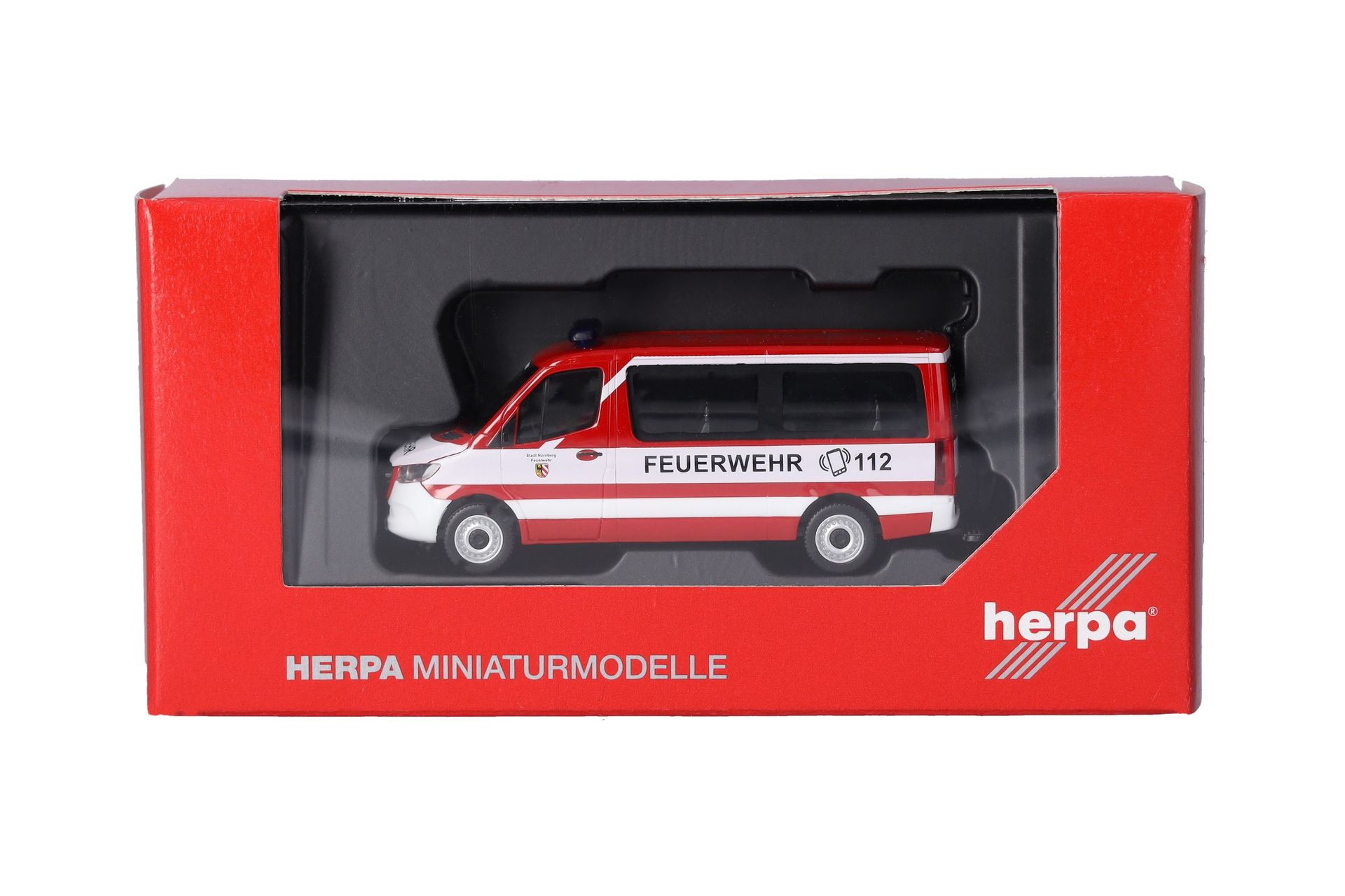 Das Vorbild für diesen Mercedes-Benz Sprinter Bus setzt die Feuerwehr Nürnberg als Mannschafts-Transportwagen ein. Herpa wird das Modell in einmaliger Auflage, versehen mit einem Warnlichtbalken Hänsch DBS 4000, fertigen.