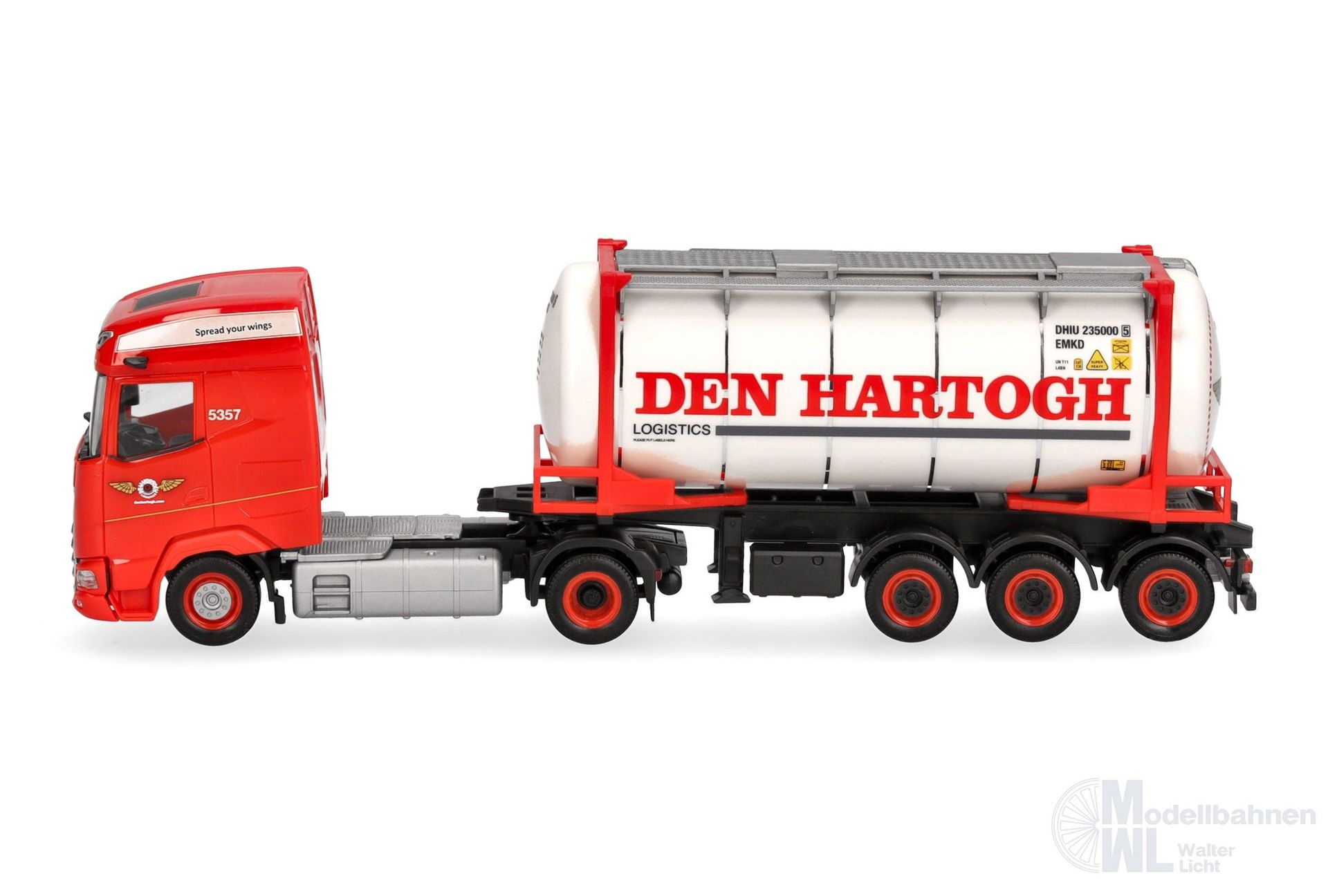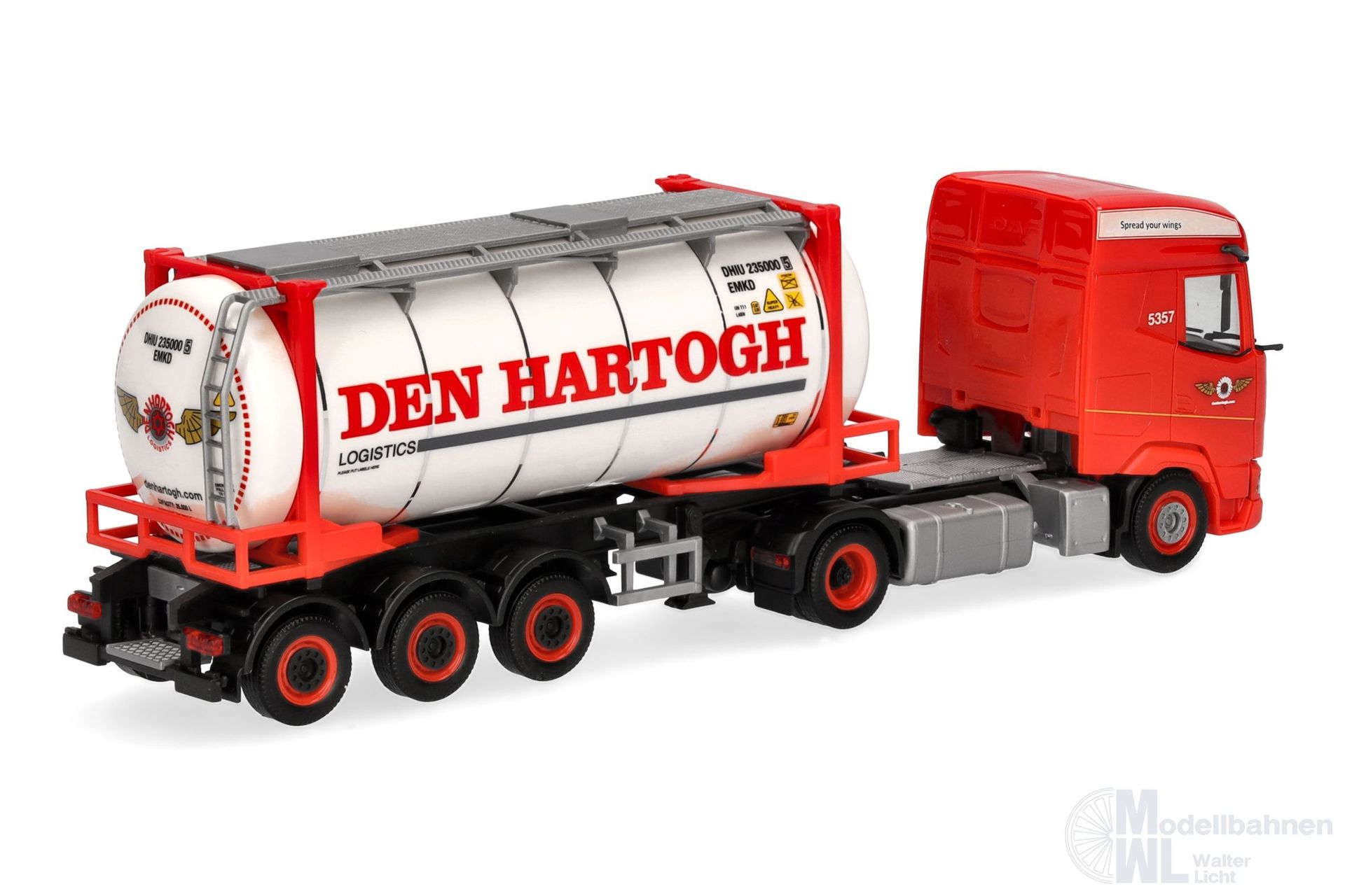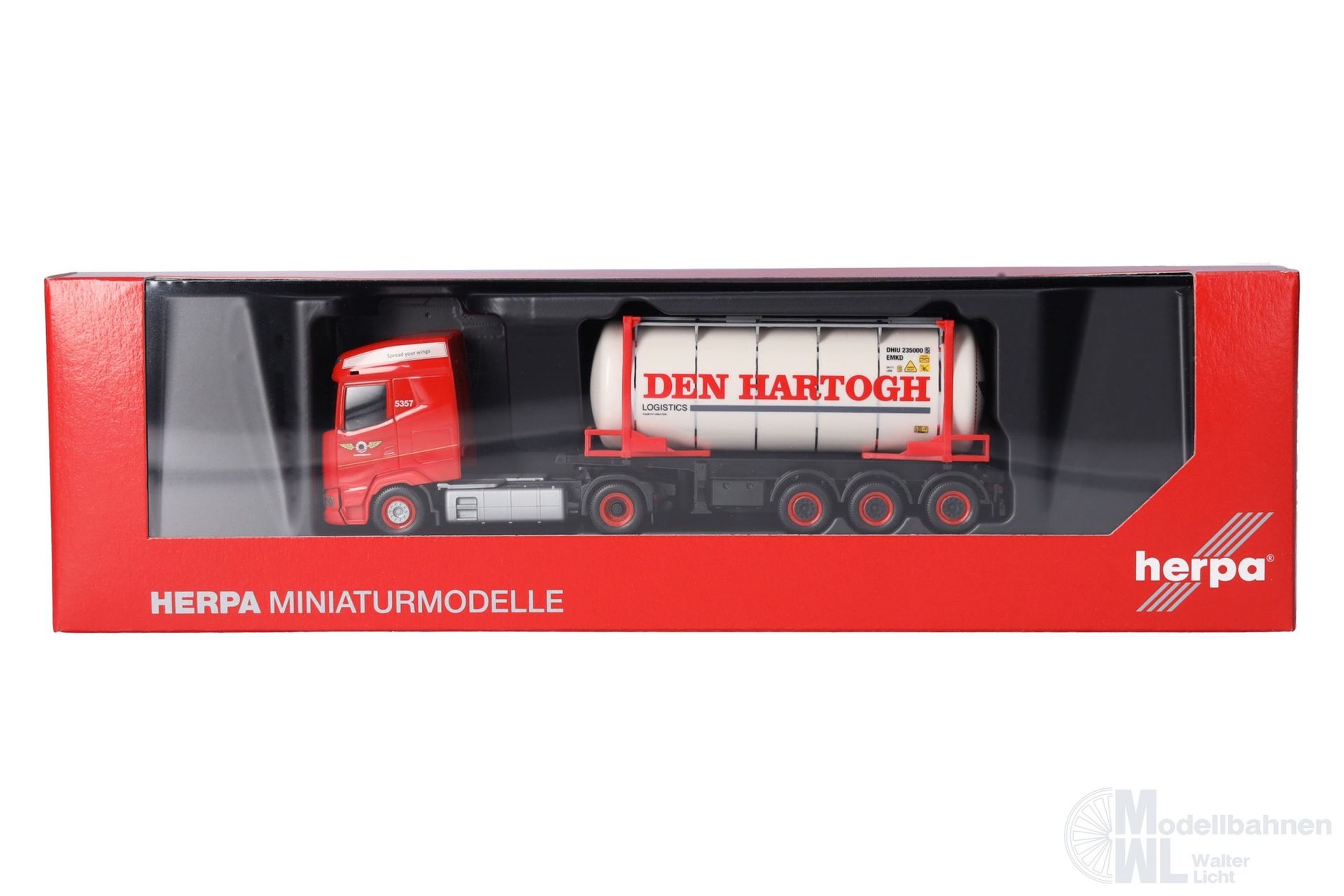 Europaweit sind die Fahrzeuge des Niederländischen Transportunternehmen Den Hartogh im Bereich von Transporten flüssiger Güter im Einsatz. Herpa setzt den aktuellen DAF XG als Swapcontainer-Sattelzug mit aufwändig bedrucktem Container in einmaliger Auflage als Miniaturmodell um.