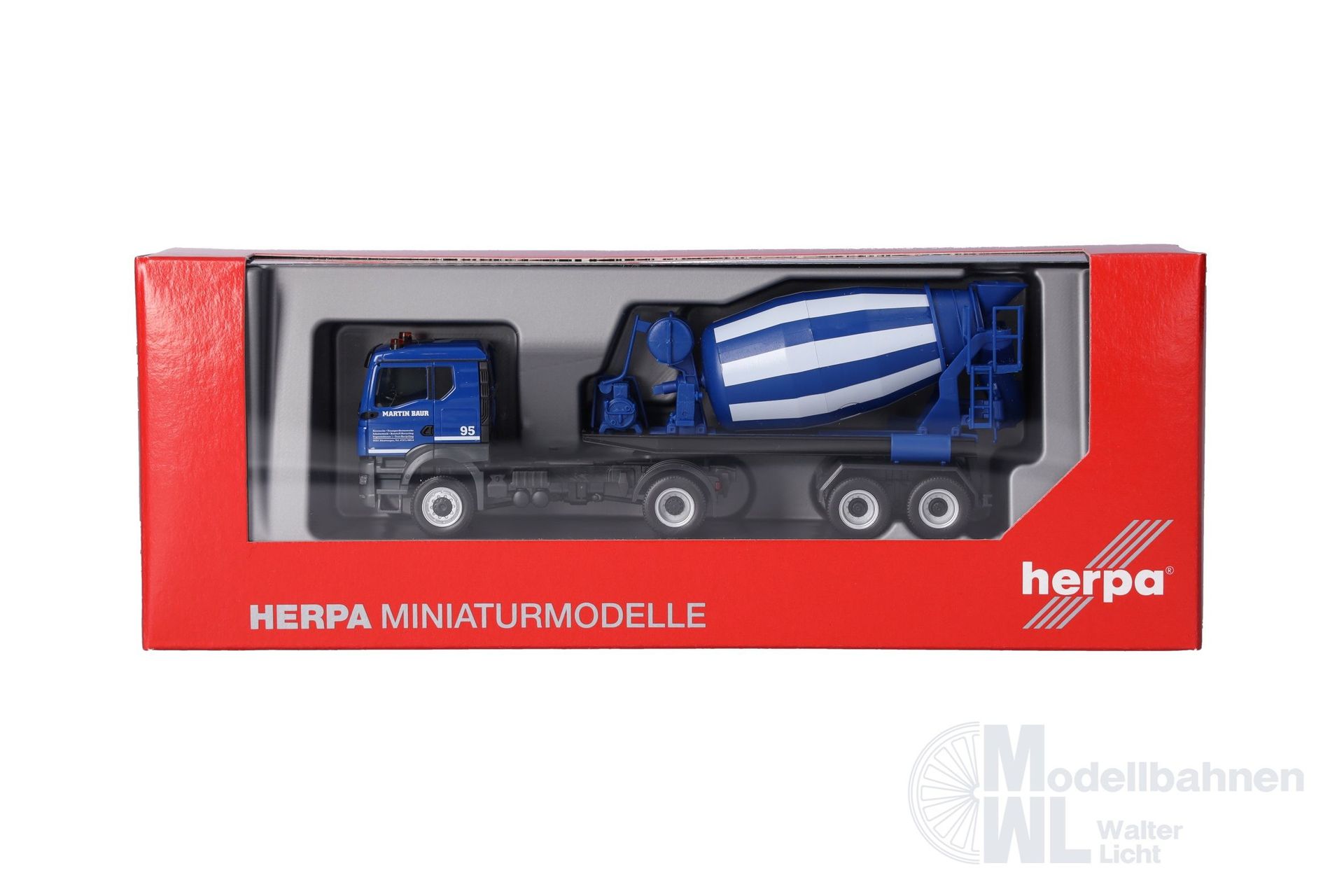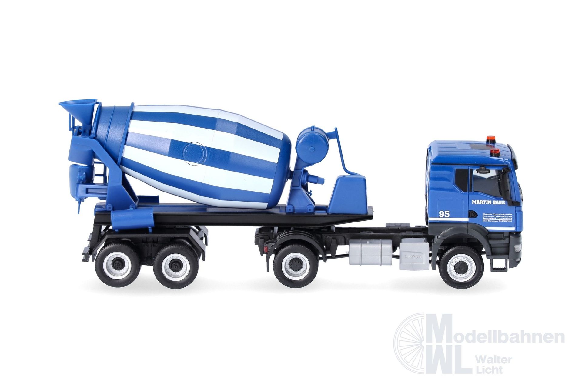 Die Serie der Fahrzeuge von Martin Baur aus Binzwangen wird durch eine zweiachsige MAN TGX TN Zugmaschine mit zweiachsigem Betonmischauflieger ergänzt. Das Modell wird in einmaliger Auflage gefertigt.