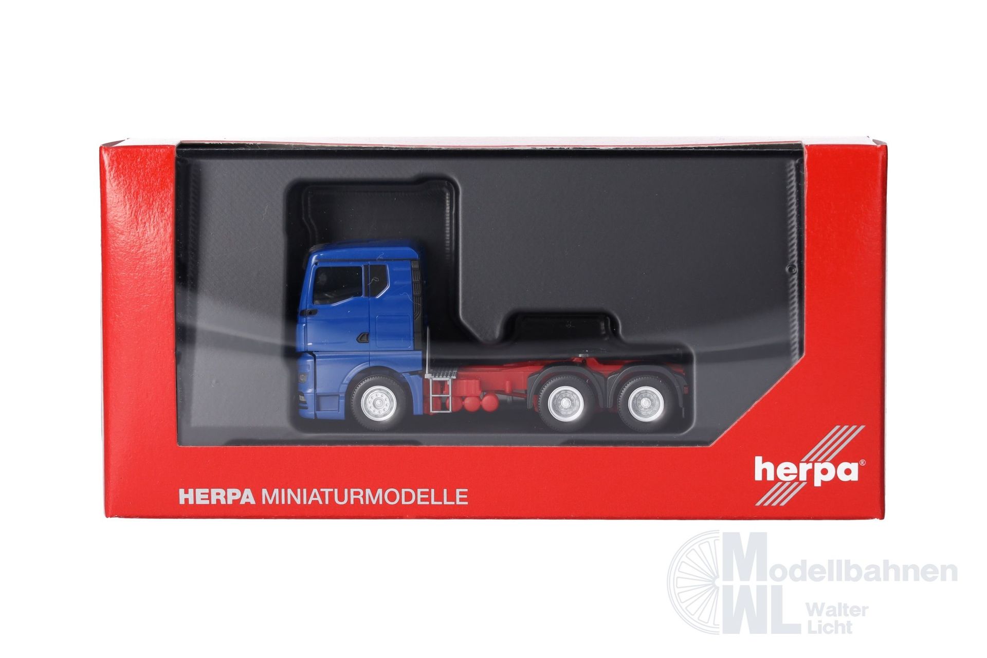 Formneuheit ! Mit blauer Kabine mit flachem Fahrerhausdach erscheint die zweite Farbvariante der dreiachsigen MAN TGX GN im Herpa-Sortiment