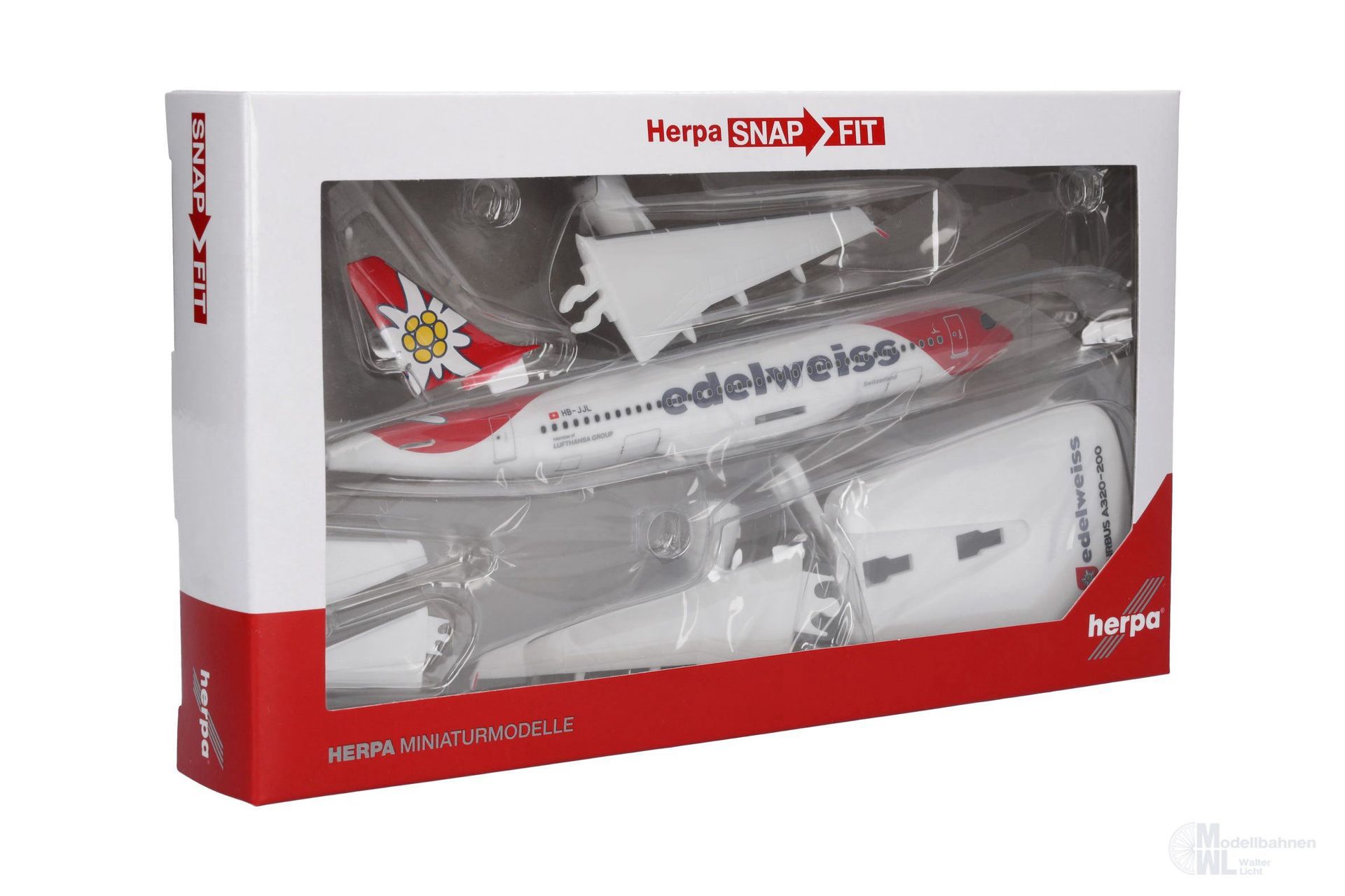 Februar 2025 ist diese A320, benannt nach dem Säntis, dem mit 2501 Metern höchsten Berg der Ostschweiz, als erstes Flugzeug mit der modernisierten Edelweiss-Bemalung in Zürich vorgestellt worden. Anlässlich der Einführung der neuen Airbus A350 modernisiert Edelweiss das Erscheinungsbild ihrer gesamten Flotte. Während die A350 bereits mit der neuen Bemalung eingeflottet werden, erhalten auch alle A320 schrittweise, im Rahmen der normalen Wartungszyklen, das überarbeitete Design. SnapFit-Modelle von Herpa überzeugen mit einem unschlagbaren Preis-/Leistungsverhältnis. Sie werden mit einem Display-Stand geliefert und sind mit wenigen Handgriffen ohne Kleber oder sonstigen Werkzeugen zusammengebaut.