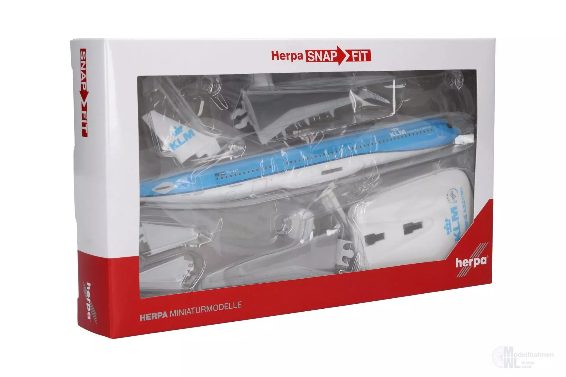 Mit der Indienststellung der ersten A321neo im September 2024 begann bei der niederländischen Fluggesellschaft die Modernisierung der Mittelstreckenflotte. Die Bestellung für bis zu 60 A320neo und A321neo wird zwischen KLM und ihrer Tochterunternehmen Transavia und Transavia France aufgeteilt. Sukzessive sollen alle Boeing 737 bei den drei Fluggesellschaften durch die wesentlich effizienteren Flugzeuge der A320neo-Familie ersetzt werden. Bei der niederländischen Airline werden die A321neo in einer Ein-Klassen-Bestuhlung mit 227 Sitzen ausgestattet. Zu den ersten Zielen gehörten unter anderem Berlin, Kopenhagen, Paris, Prag, Rom, Stockholm und Wien. Bei einer betriebsinternen Umfrage hatten sich die KLM-Mitarbeiter mehrheitlich dafür ausgesprochen, die A321neo-Flotte, mit der eine umfangreiche Transformation der Flotte begonnen wurde, nach Schmetterlingen zu benennen. Diese SnapFit-Neuheit im Maßstab 1:200 mit der Registration PH-AXC ist nach dem Zitronenfalter benannt. SnapFit-Modelle von Herpa überzeugen mit einem unschlagbaren Preis-/Leistungsverhältnis. Sie werden mit einem Display-Stand geliefert und sind mit wenigen Handgriffen ohne Kleber oder sonstigen Werkzeugen zusammengebaut.