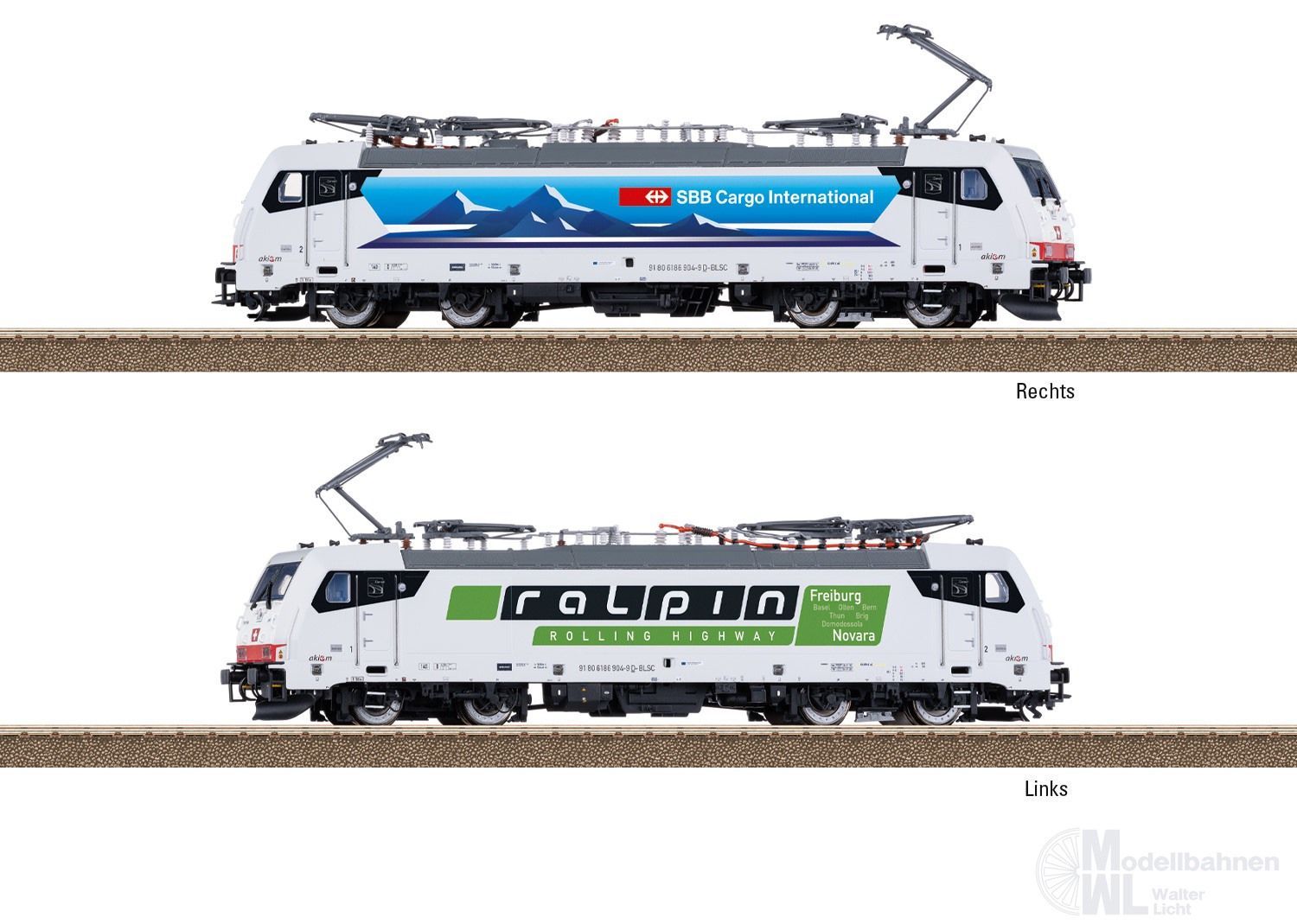 Vorbild: Elektrolokomotive Baureihe 186 der Akiem SAS, vermietet an die SBB Cargo International. Lichtgraue Grundfarbgebung mit zwei unterschiedlich gestalteten Seitenflächen. Betriebsnummer 186 904-9 "Ceneri". Betriebszustand ab 2022.