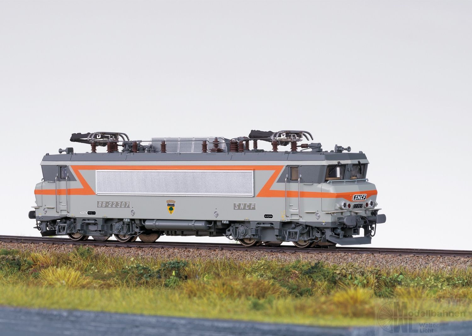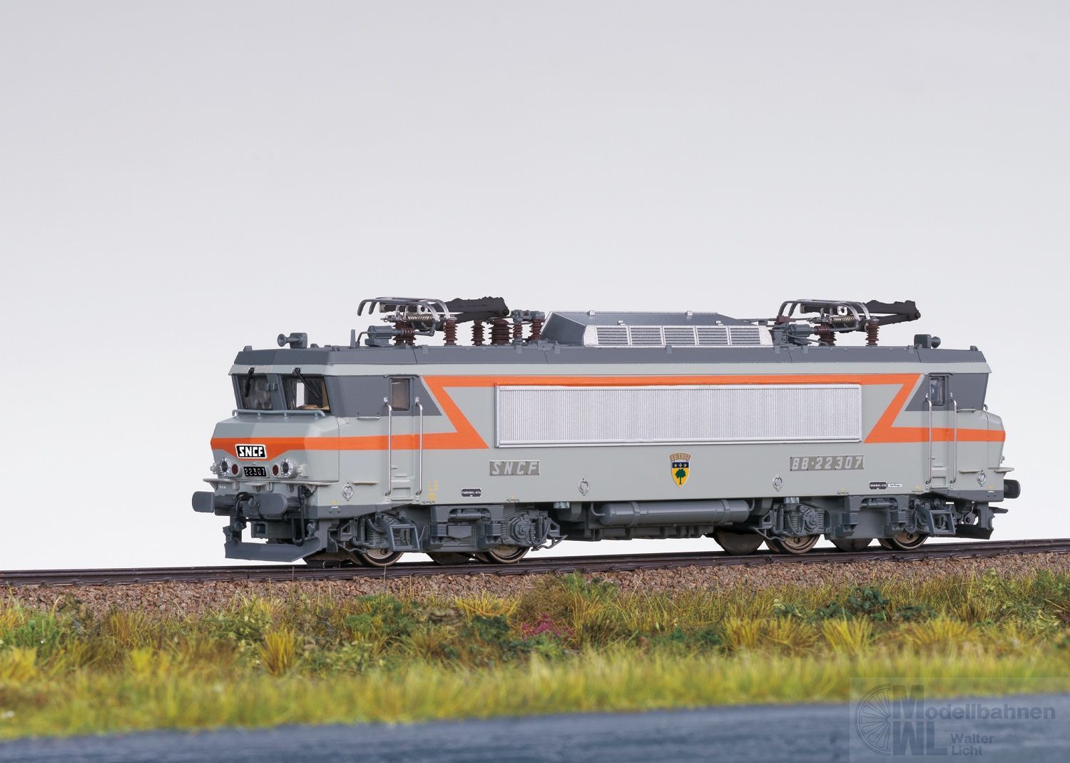 Vorbild: Elektrolokomotive BB 22200 der Französischen Staatsbahnen (SNCF). Steingraue Grundfarbgebung. Betriebsnummer BB 22307. Betriebszustand um 1985.