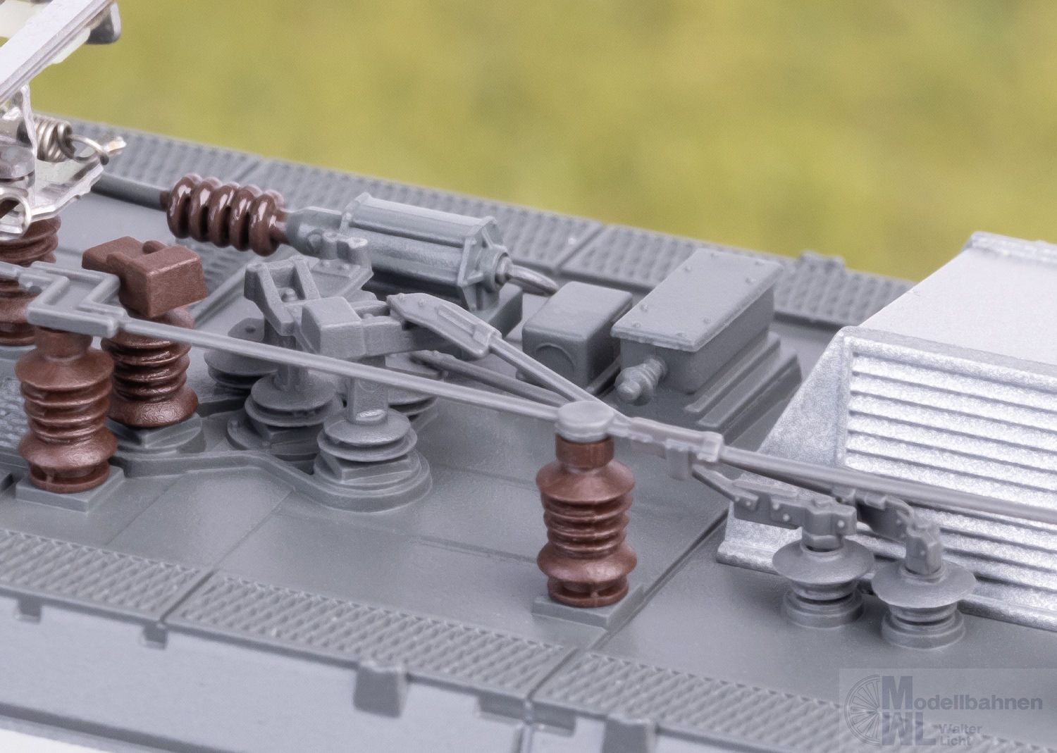 Viele separat angesetzte Details.Neu konstruierte Stromabnehmer mit unterschiedlichen Schleifstücken.