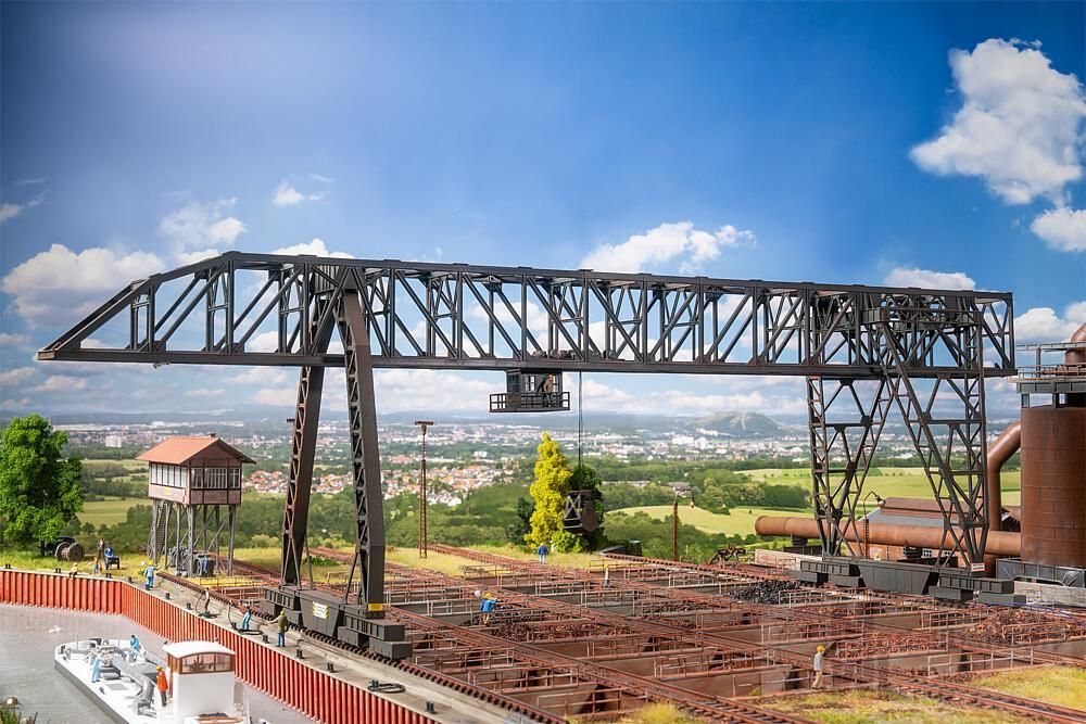 Inspiriert vom Portalkran des Meidericher Hüttenwerks, der 2025 sein 100-jähriges Bestehen feiert, bringt dieses Modell ein Stück Schwerindustrie auf die Anlage. Die Konstruktion erlaubt den Bau in vier Längen – von 528 bis 798 mm – und macht den Kran vielseitig einsetzbar. Ideal für Industrieanlagen zum Schaffen einer authentischen Atmosphäre.