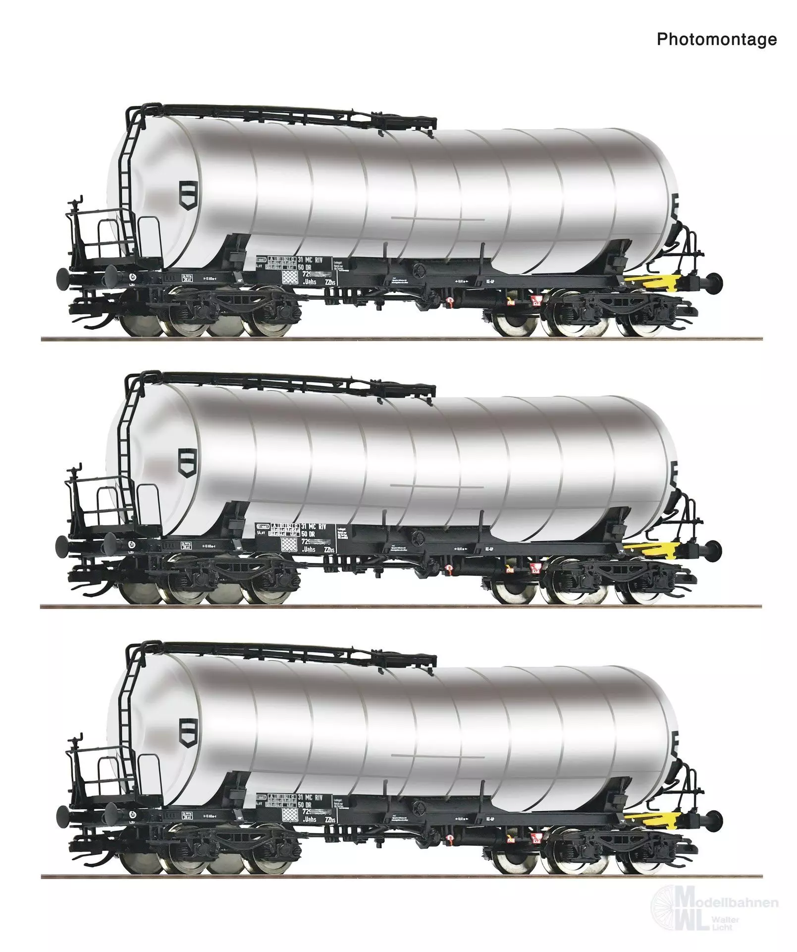 Produktinformationen "Roco 6680032 - Knickkesselwagen Set DR Ep.IV 3.tlg. Chrom TT 1:120"