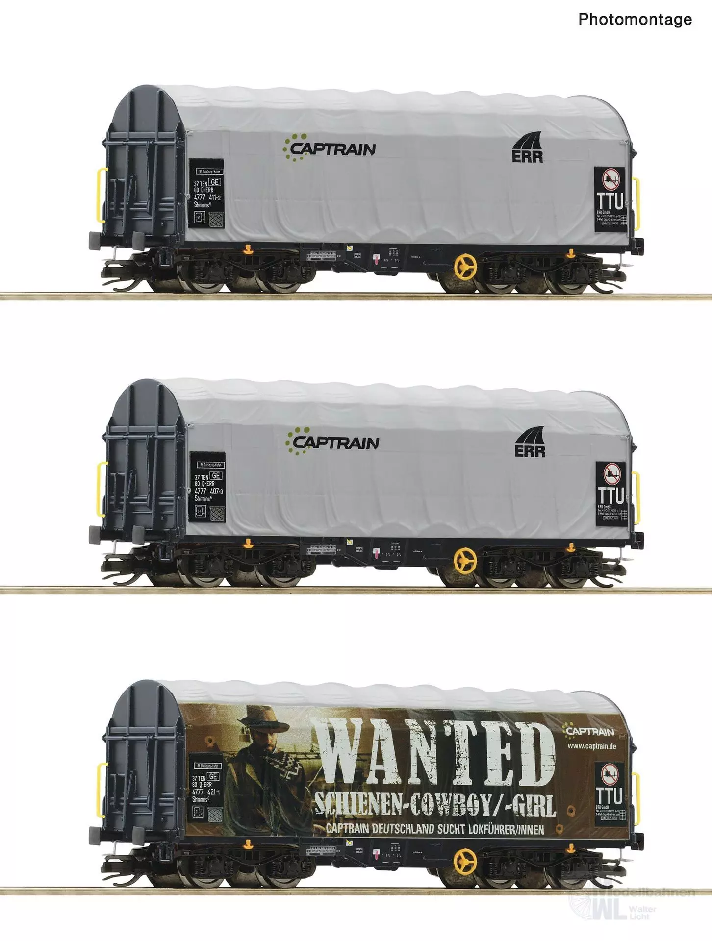 Produktinformationen "Roco 6680023 - Schiebeplanenwagen Set Captrain Ep.VI 3.tlg. TT 1:120"
