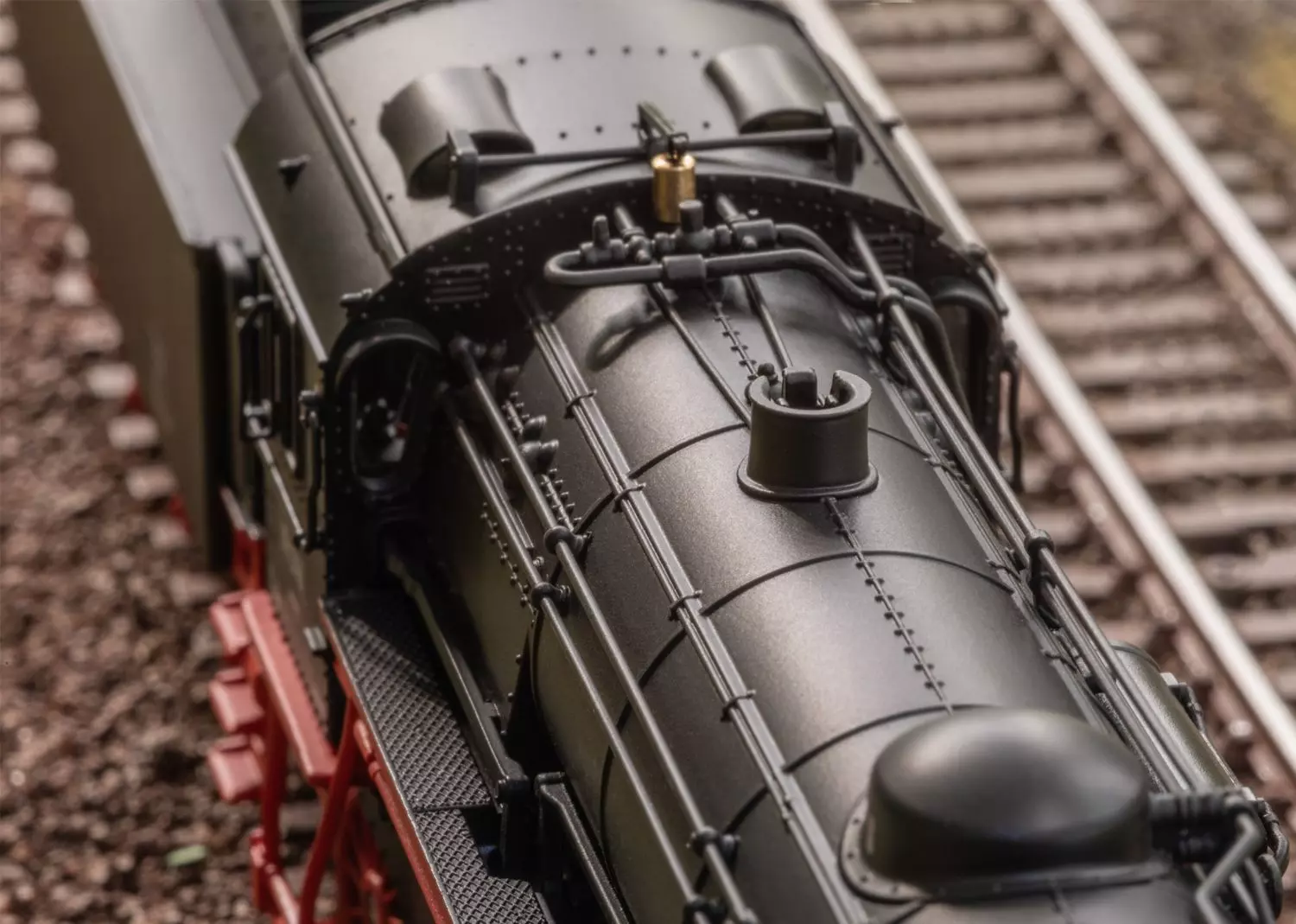 Komplette Neuentwicklung.Besonders filigrane Metallkonstruktion.Eine Vielzahl angesetzter Details.Serienmäßig mit Raucheinsatz und geschwindigkeitsabhängigem, dynamischem Rauchausstoß.Führerstandbeleuchtung und Feuerbüchsenflackern digital schaltbar. RailCom-fähiger DCC/mfx Digital-Decoder mit umfangreichen Betriebs- und Sound-Funktionen.Pufferhöhe an Lok und Tender nach NEM.Mit Pufferspeicher zur Überbrückung von kurzen stromlosen Stellen.