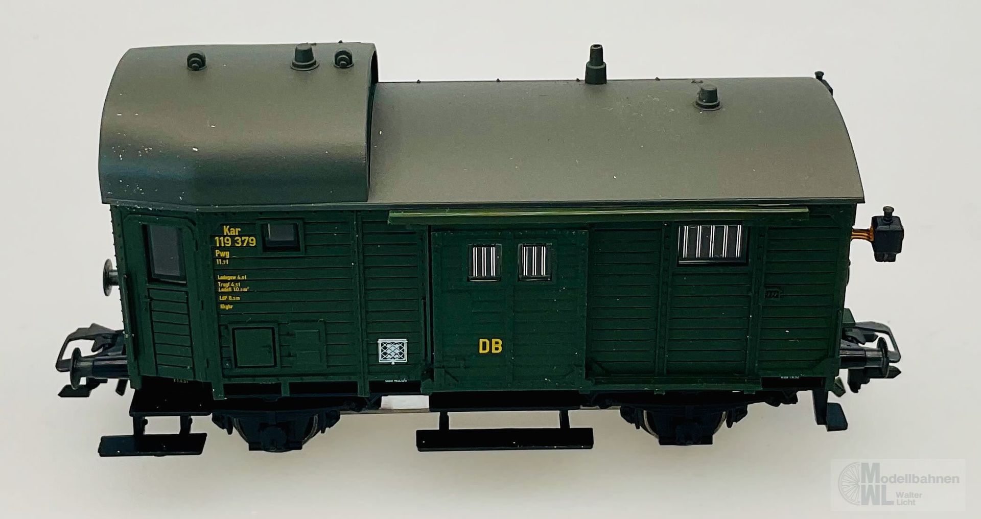 Modell: Mit Digital-Decoder mfx und umfangreichen Geräuschfunktionen. Schlussbeleuchtung digital schaltbar, konventionell in Betrieb. Schleifer montiert. Güterzug-Gepäckwagen mit Dachaufsatz. Wagen in flaschengrüner Farbgebung. Länge über Puffer ca. 9,6 cm.