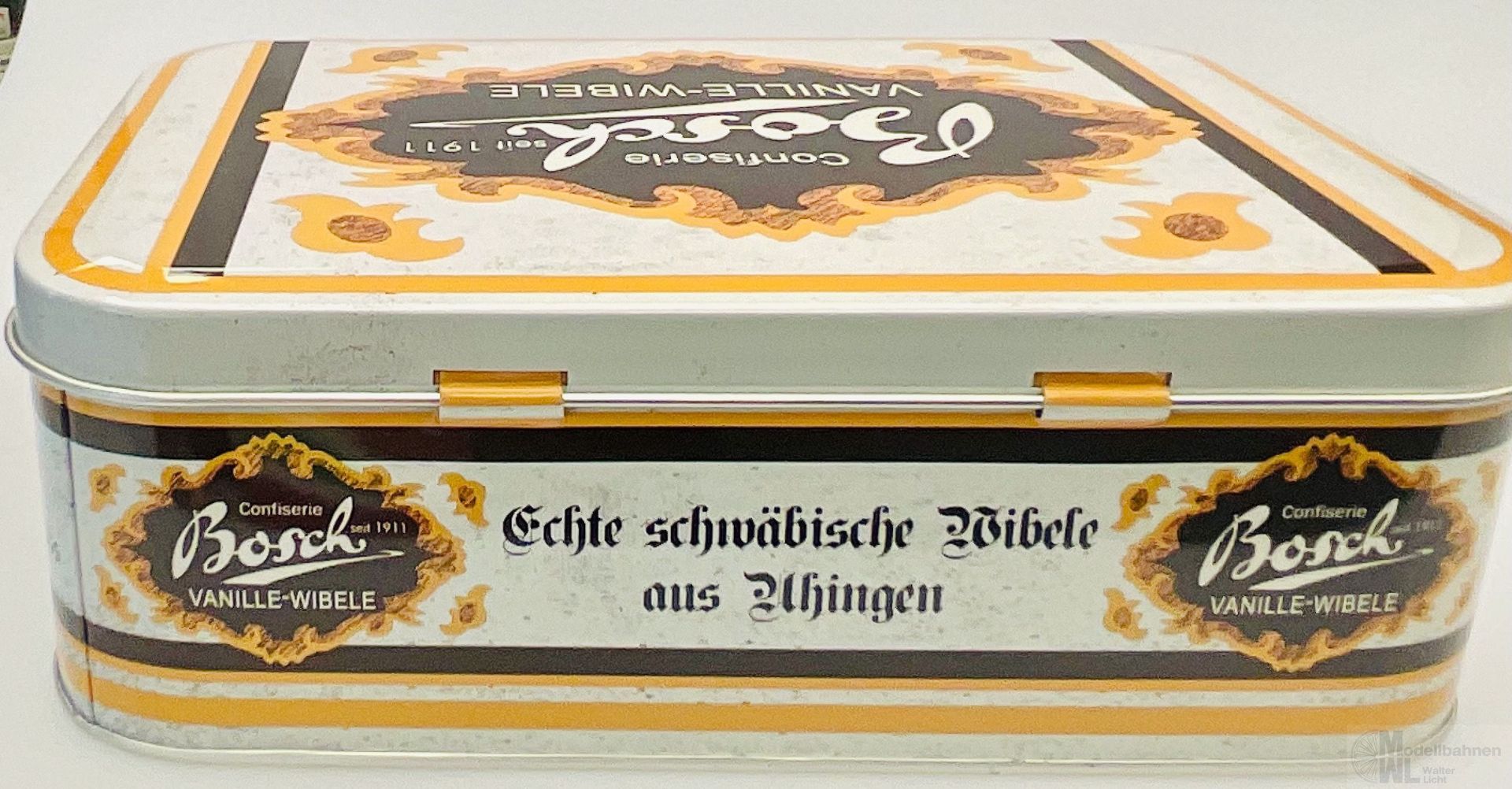 Attraktive Verpackung in einer Metall-Dose, als Nachbildung einer historischen Dose zur Aufbewahrung der Vanille-Wibele.