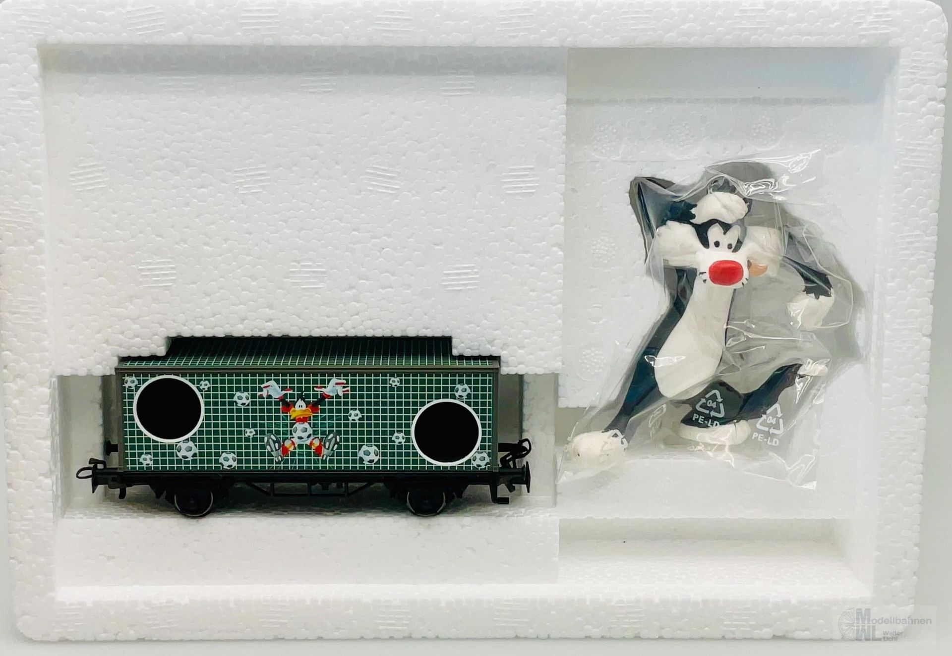 Modell: Gestaltung des Wagens als Fußball-Torwand mit 2 Öffnungen, unter Verwendung von Motiven aus der Welt der "Looney Tunes".