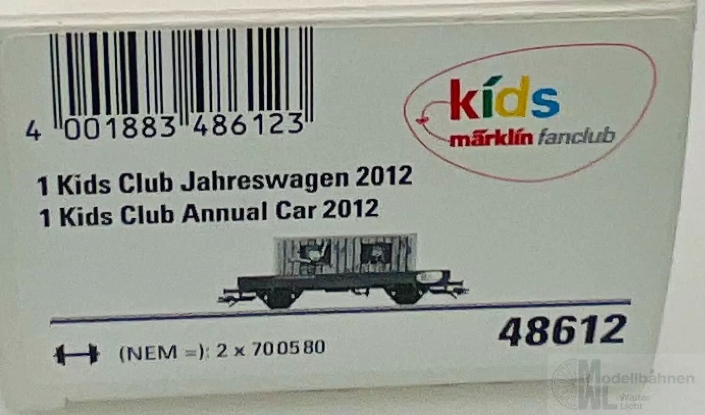 Produktinformationen "Märklin 48612 - MÄRKLIN - Märklin Kids Club Jahreswagen 2012 H0/WS"