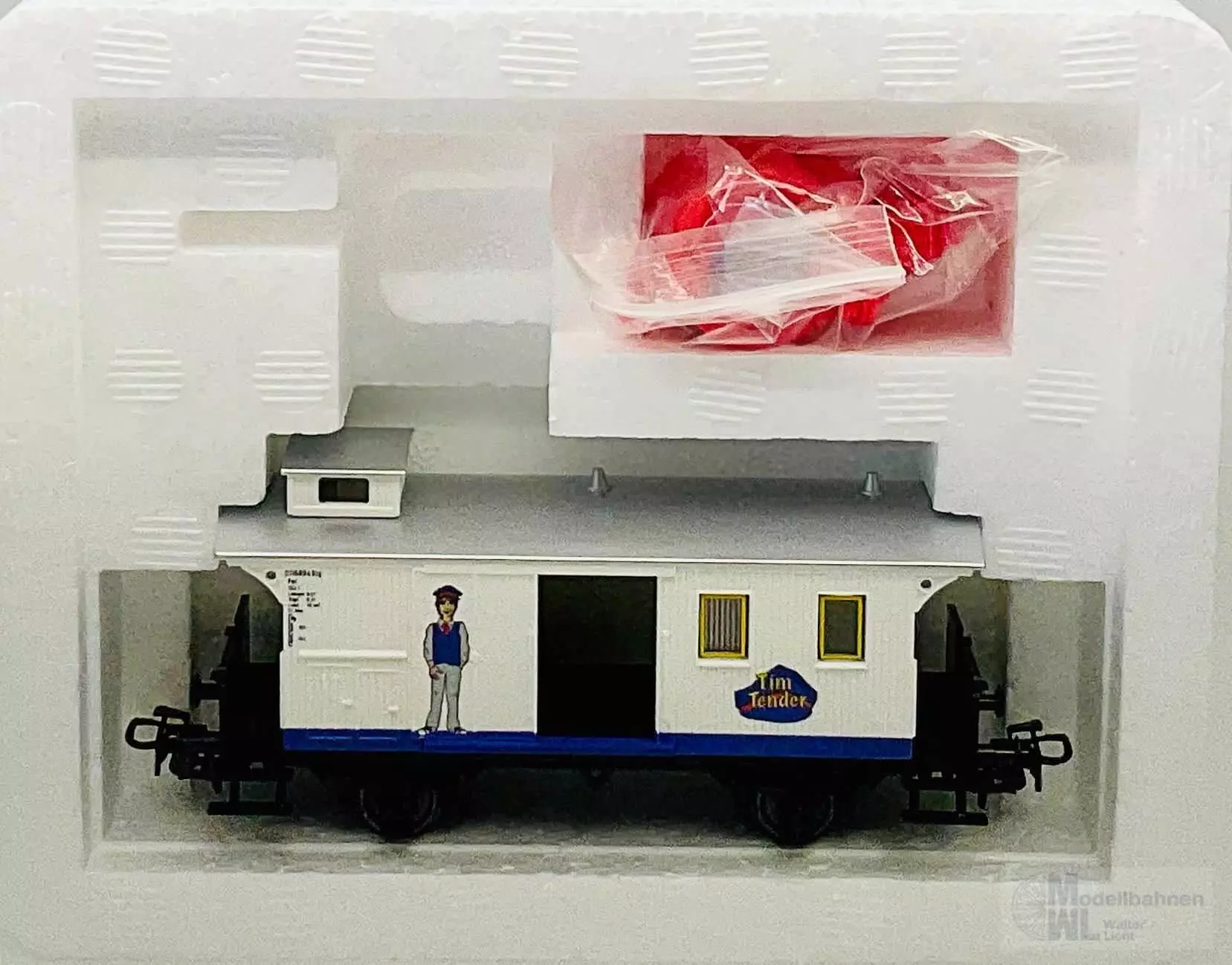 Modell: Dienstwagen von Tim Tender. Wagen in Sonderfarbgebung mit Motiven aus der Welt des Märklin Start up Clubs. Zur Abrundung liegt dem Wagen eine Schaffnerpfeife bei. Relex-Kupplungen.