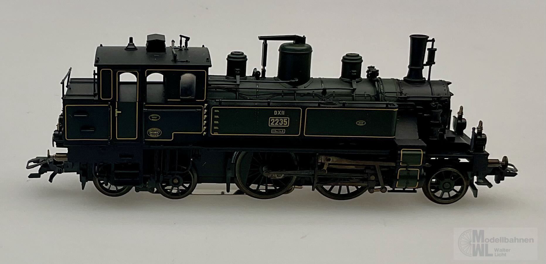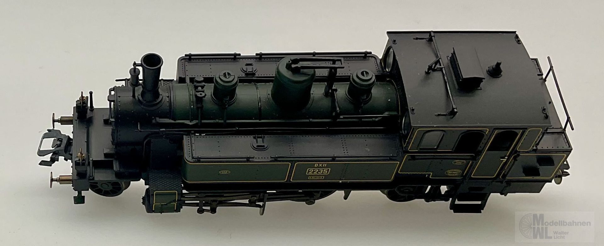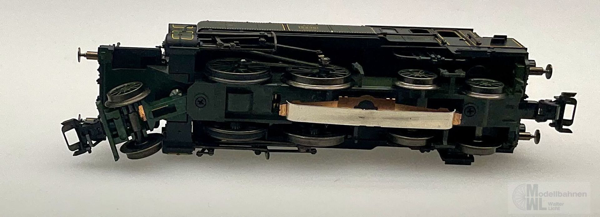 Modell: Tenderlokomotive mit Digital-Decoder mfx. Hochleistungsmotor im Kessel. 2 Achsen angetrieben. Fahrtrichtungsabhängig wechselndes Zweilicht-Spitzensignal konventionell in Betrieb, digital schaltbar. Anfahrbeschleunigung und Bremsverzögerung digital schaltbar. Viele angesetzte Einzelheiten. Alle 3 Wagen mit kinematikgeführten Kurzkupplungen nach NEM. Gesamtlänge über Puffer 41,8 cm.