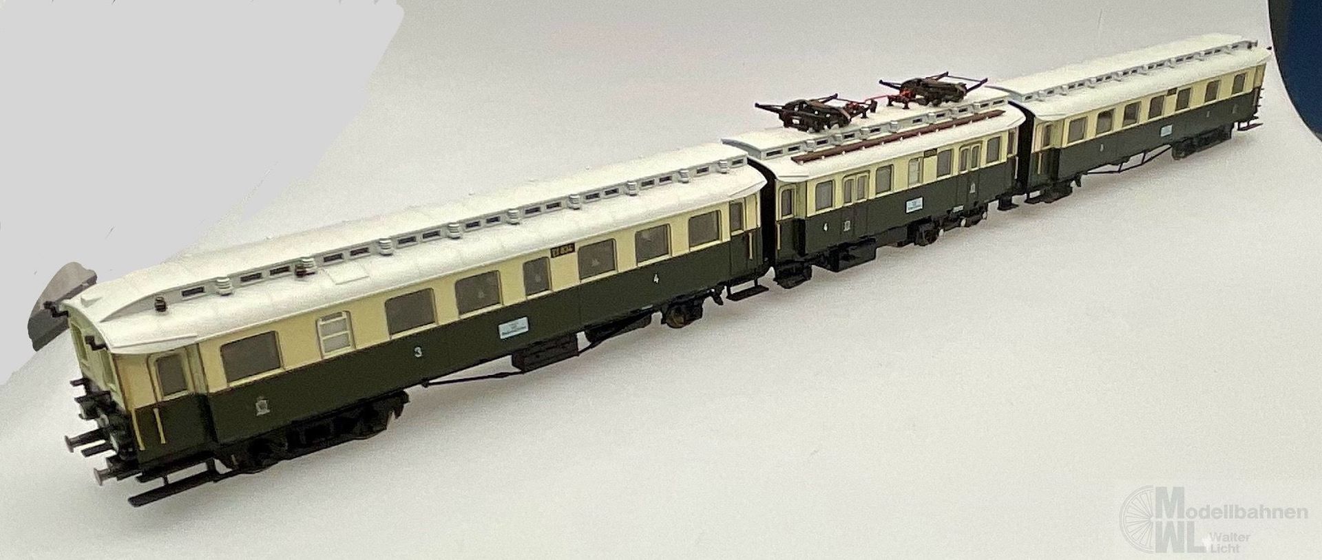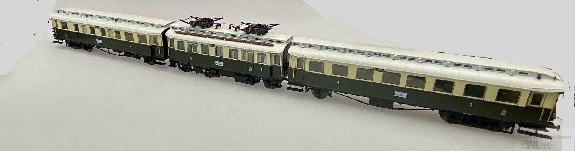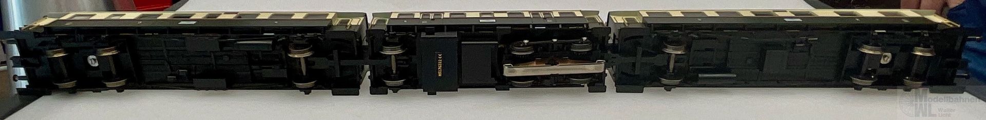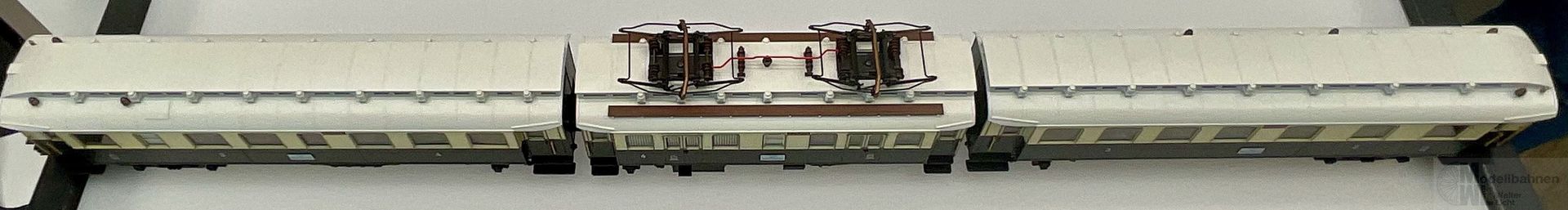 Modell: Mit Digital-Decoder, geregeltem Hochleistungsantrieb, vorbildgerecht angetriebene Mitteleinheit, 2 Achsen angetrieben, 2 Haftreifen, 2-Licht-Spitzensignal und 2 rote Schlusslichter mit der Fahrtrichtung wechselnd. Innenbeleuchtung mit wartungsfreien Leuchtdioden. Spitzensignal und Innenbeleuchtung konventionell in Betrieb, digital schaltbar. Anfahr- und Bremsverzögerung mit Control Unit oder mit Systems digital schaltbar. Inneneinrichtung der Fahrgasträume, Führerstände mit freiem Durchblick. Spezial-Kurzkupplung zwischen den Fahrzeugen, an den Enden Kupplungsaufnahmen nach NEM.