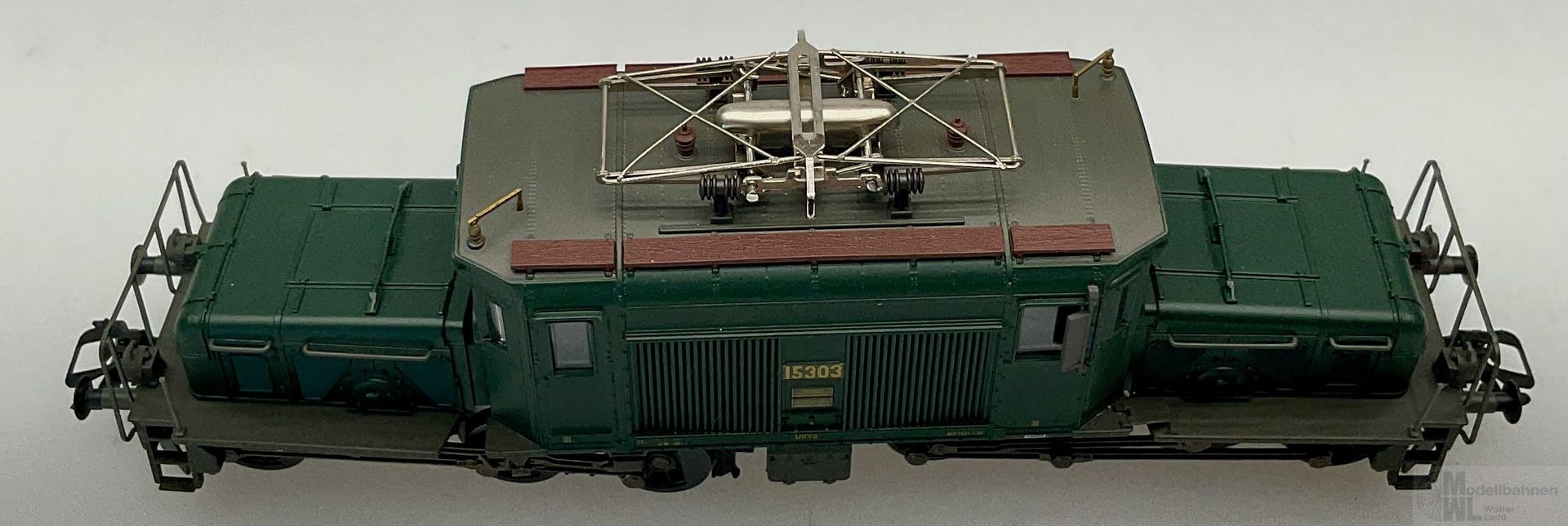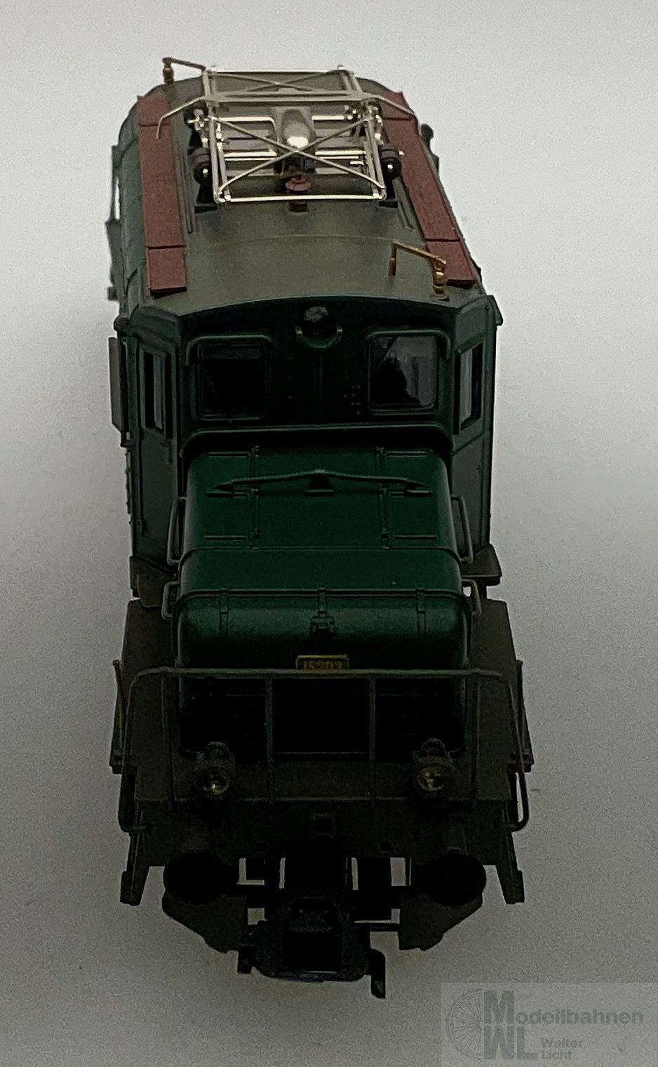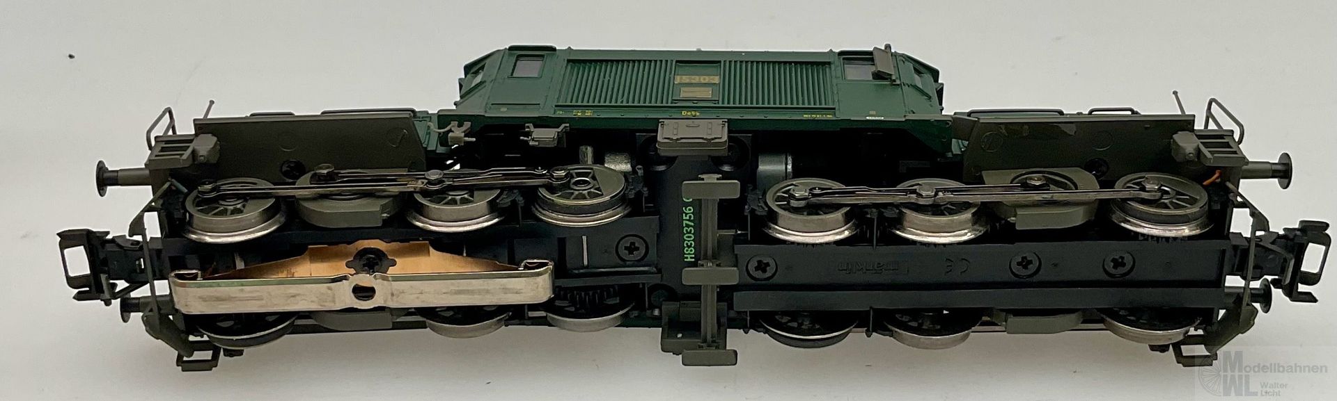 Modell: Mit Digital-Decoder und geregeltem Hochleistungsantrieb. 6 Achsen angetrieben, Haftreifen. Kurvengängiges Gelenkfahrwerk. Fahrtrichtungsabhängig wechselndes Dreilicht-Spitzensignal und 1 weißes Schlusslicht, konventionell in Betrieb, digital schaltbar. Angesetzte Griffstangen aus Metall. Bremsschläuche und Vorbildkupplungen an der Pufferbohle ansteckbar. Länge über Puffer 16,2 cm.