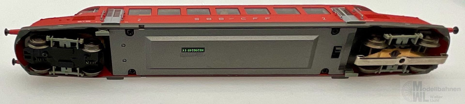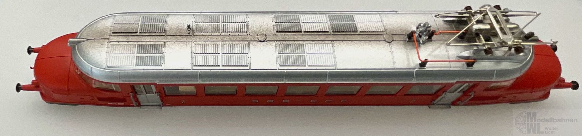 Modell: Mit mfx-Decoder, geregeltem Hochleistungsantrieb und Geräuschgenerator. Spezialmotor mit Schwungmasse und Kardanwelle zum Treibgestell. 2 Achsen angetrieben. Haftreifen. Spitzensignal mit Schweizer Lichtwechsel konventionell in Betrieb, digital schaltbar. Spitzensignal und Innenbeleuchtung mit warmweißen LED.