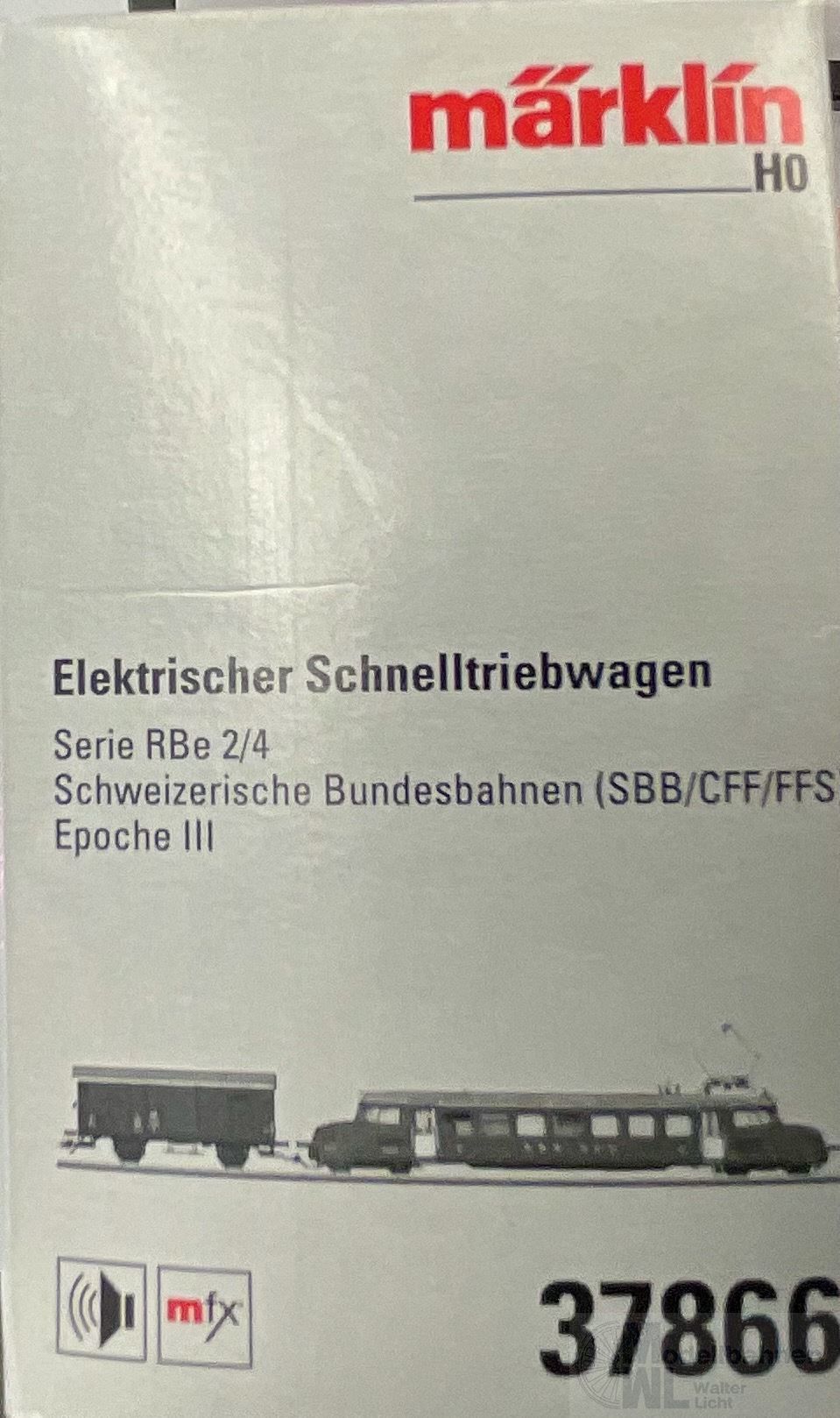 Produktinformationen "Märklin 37866 - MÄRKLIN - Triebwagen Rbe 2/4 SBB Ep.III Roter Pfeil mit Güterwagen H0/WS Sound"