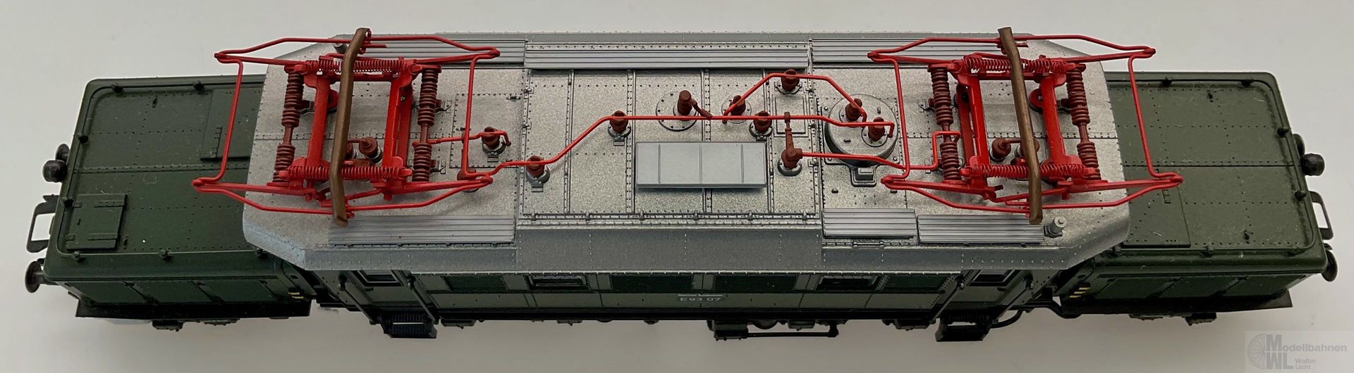 Modell: Mit neuem Digital-Decoder mfx+ und umfangreichen Geräuschfunktionen. Geregelter Hochleistungsantrieb mit Schwungmasse, zentral eingebaut. Jeweils 2 Achsen in jedem Treibgestell über Kardan angetrieben. Haftreifen. Fahrtrichtungsabhängig wechselndes Dreilicht-Spitzensignal und zwei rote Schlusslichter konventionell in Betrieb, digital schaltbar. Spitzensignal an Lokseite 2 und 1 jeweils digital separat abschaltbar. Wenn Spitzensignal an beiden Lokseiten abgeschaltet ist, dann beidseitige Funktion des Doppel-A-Lichtes. Zusätzlich kann die Führerstandsbeleuchtung digital geschaltet werden. Beleuchtung mit wartungsfreien warmweißen und roten Leuchtdioden (LED). Angesetzte Griffstangen. Führerstände und Maschinenraum mit Relief-Inneneinrichtung. Ansteckbare Bremsschläuche und Kupplungshaken liegen separat bei. Länge über Puffer 20,3 cm.