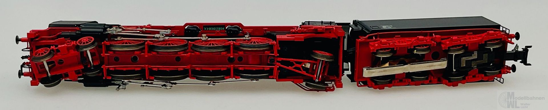 Modell: Mit Digital-Decoder mfx+ und umfangreichen Licht- und Soundfunktionen. Geregelter Hochleistungsantrieb mit Schwungmasse im Kessel. 4 Achsen angetrieben. Haftreifen. Lokomotive und Tender weitgehend aus Metall. Rauchsatz aus 72270 ist serienmäßig eingebaut. Fahrtrichtungsabhängig wechselndes Zweilicht-Spitzensignal an Lok und Tender sowie eingebauter Rauchsatz konventionell in Betrieb, digital schaltbar. Zusätzlich ist eine Führerstandbeleuchtung und eine Fahrwerksbeleuchtung digital schaltbar. Beleuchtung mit wartungsfreien warmweißen Leuchtdioden (LED). Verstellbare Kupplung mit Kinematik zwischen Lok und Tender. Am Tender kinematikgeführte Kurzkupplung mit NEM-Schacht. Befahrbarer Mindestradius 437,5 mm. Bremsschläuche, Heizkupplung und Schraubenkupplungsimitation liegen bei. Länge über Puffer 29,4 cm.