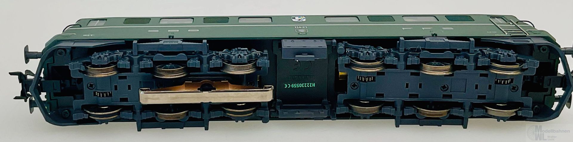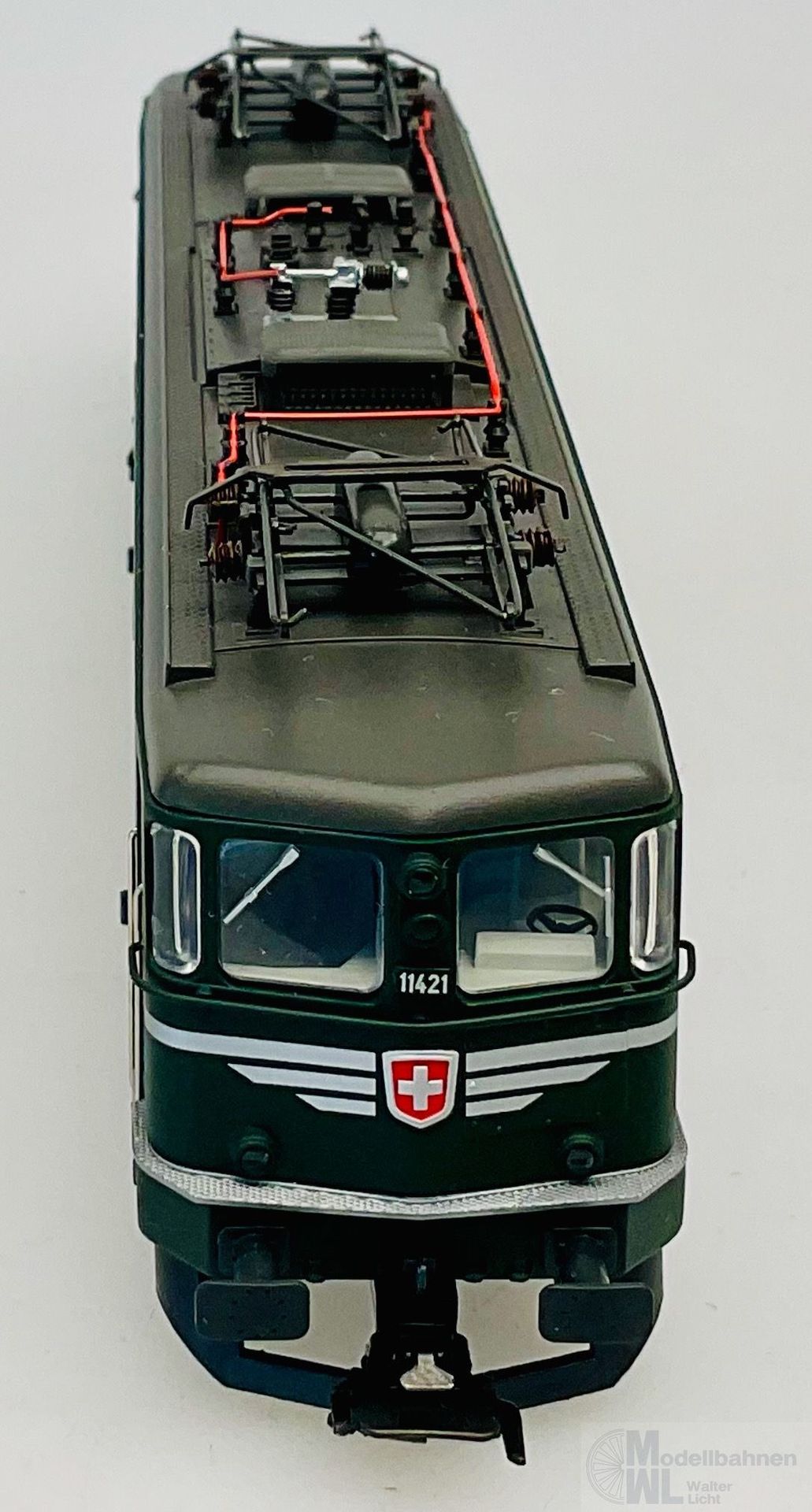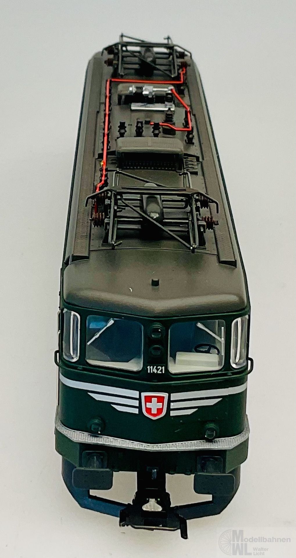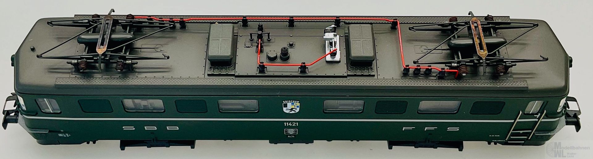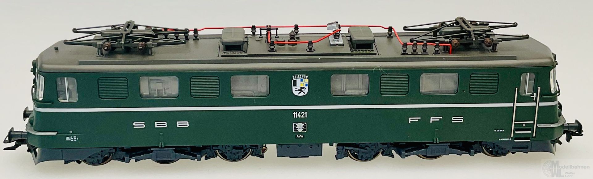 Modell: Mit Digital-Decoder mfx+ und umfangreichen Geräuschfunktionen. Geregelter Hochleistungsantrieb mit Schwungmasse zentral eingebaut. Je zwei Achsen in beiden Drehgestellen angetrieben. Haftreifen. Fahrtrichtungsabhängig wechselndes Dreilicht-Spitzensignal und ein weißes Schlusslicht (Schweizer Lichtwechsel) konventionell in Betrieb, digital schaltbar. Weitere separat schaltbare Lichtfunktionen: Umschalten auf ein rotes Schlusslicht, umschalten auf zwei rote Schlusslichter, umschalten auf Warnsignal, Fahrberechtigungssignal und Rangierlicht. Führerstands- und Maschinenraumbeleuchtung separat digital schaltbar. Beleuchtung mit wartungsfreien warmweißen und roten LED. Viele angesetzte Details wie Griffstangen aus Metall. Kurzkupplungskinematik.