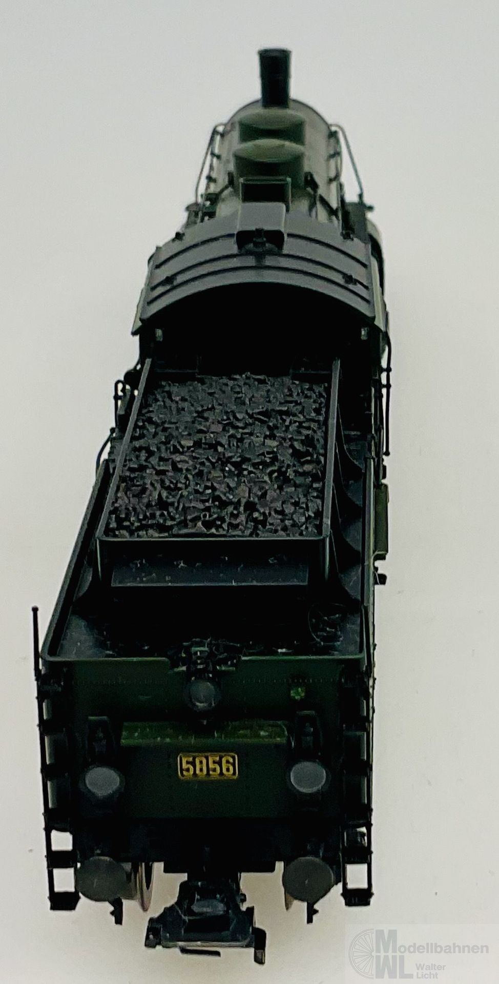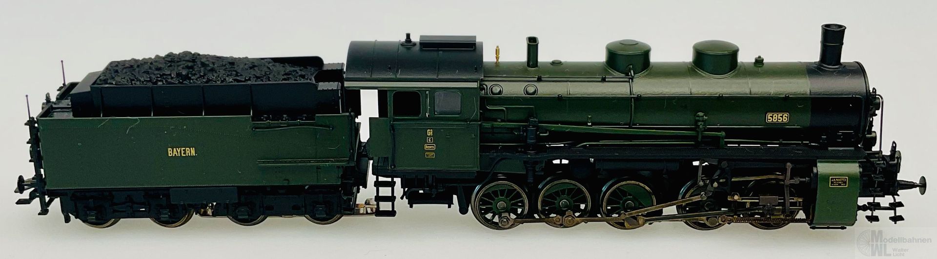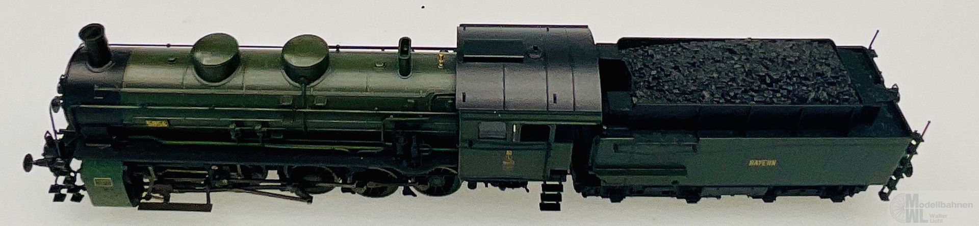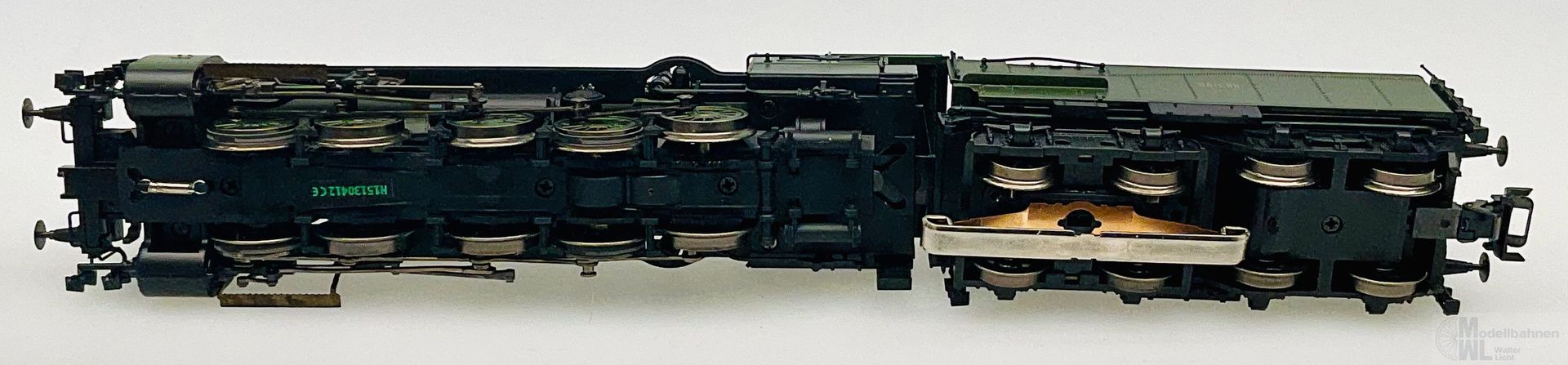 Modell: Mit neuem Digital-Decoder mfx+ und umfangreichen Geräuschfunktionen. Geregelter Hochleistungsantrieb mit Schwungmasse im Kessel. 5 Achsen angetrieben. Haftreifen. Lokomotive und Tender weitgehend aus Metall. Eingerichtet für Rauchsatz 72270. Fahrtrichtungsabhängig wechselndes Zweilicht-Spitzensignal und nachrüstbarer Rauchsatz konventionell in Betrieb, digital schaltbar. Drittes Zugbegegnungslicht an der Lok vorne und am Tender fahrtrichtungsabhängig digital separat zuschaltbar. Beleuchtung mit wartungsfreien warmweißen Leuchtdioden (LED). Kulissengeführte Kurzkupplung mit Kinematik zwischen Lok und Tender. Vorne an der Lok und hinten am Tender kinematikgeführte Kurzkupplung mit NEM-Schacht. Befahrbarer Mindestradius 360 mm. Kolbenstangenschutzrohre und Bremsschläuche liegen bei.