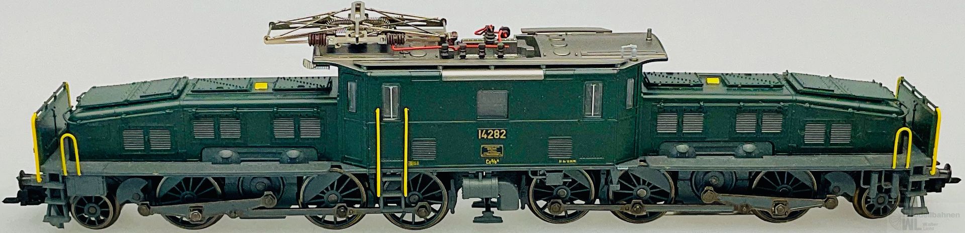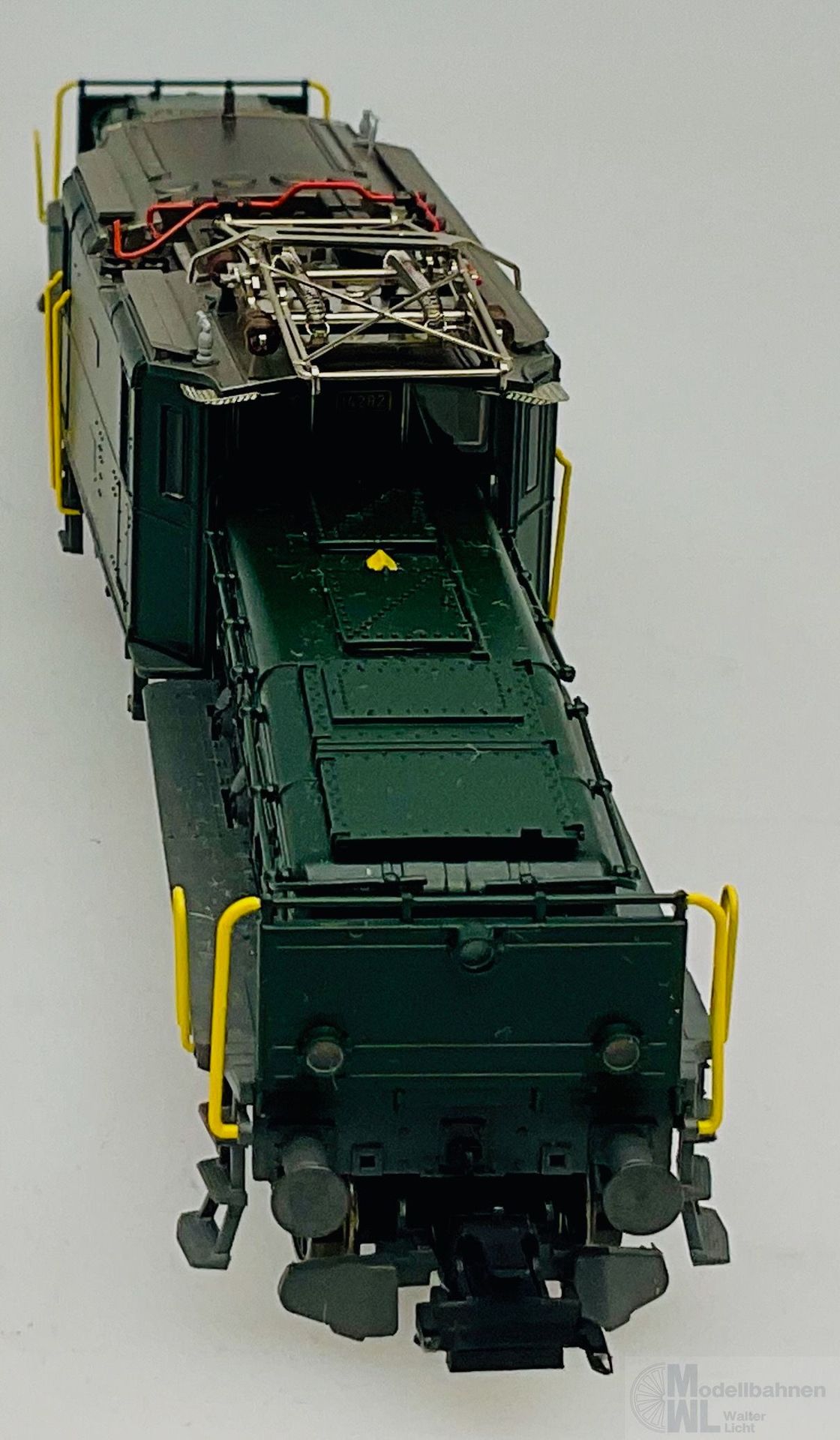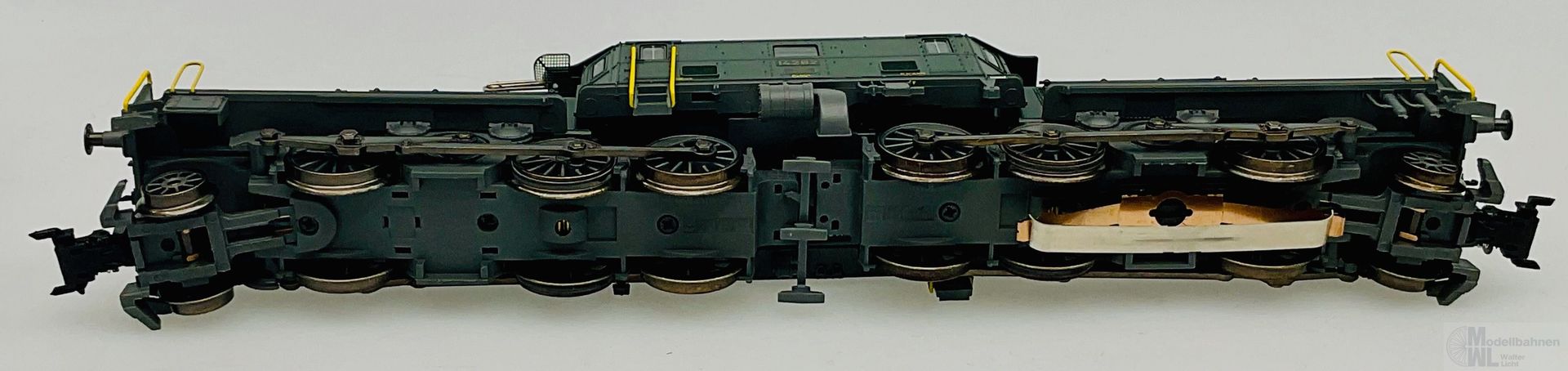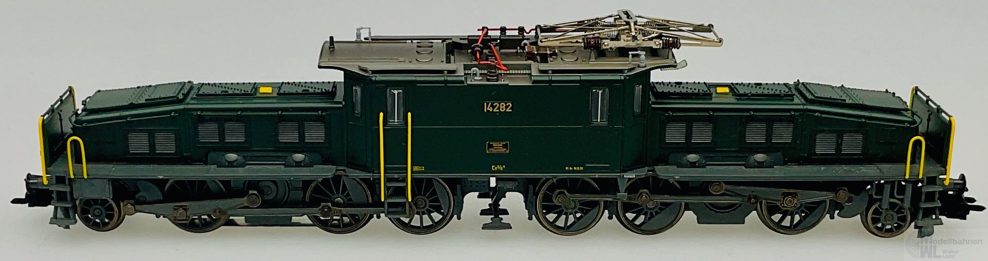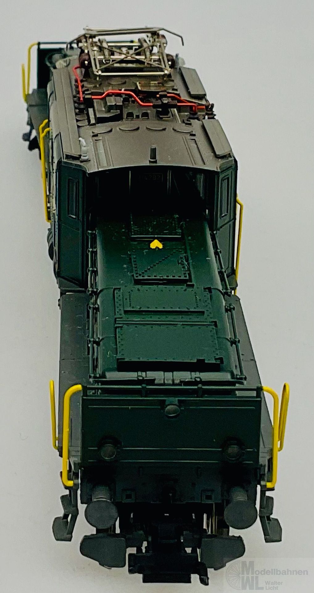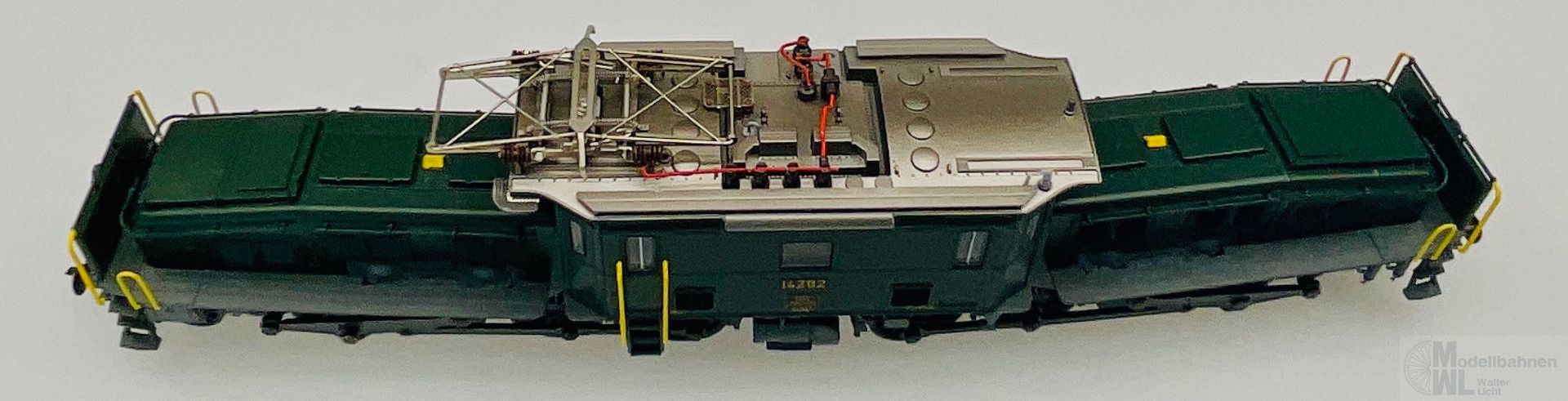 Modell: Mit Digital-Decoder mfx+ und umfangreichen Geräuschfunktionen. 2 geregelte Hochleistungsantriebe mit Schwungmasse, jeweils 1 Motor in jedem Treibgestell. Jeweils 3 Achsen und Blindwelle angetrieben. Haftreifen. Kurvengängiges Gelenkfahrwerk. 3 Stirnlampen jeweils in der Rangiererbühne mit geschlossenem Schutzblech integriert. Fahrtrichtungsabhängig wechselndes Dreilicht-Spitzensignal und 1 weißes Schlusslicht (Schweizer Lichtwechsel) konventionell in Betrieb, digital schaltbar. Beleuchtung umschaltbar bei Solofahrt auf 1 rotes Schlusslicht. Spitzensignal an Lokseite 2 und 1 jeweils separat digital abschaltbar. Wenn Spitzensignal an beiden Lokseiten abgeschaltet ist, dann beidseitige Funktion des Doppel-A-Lichtes. Beleuchtung mit wartungsfreien warmweißen und roten Leuchtdioden (LED). Stromabnehmer als Digital-Funktion separat heb- und senkbar. Telex-Kupplung auf beiden Lokseiten jeweils separat digital schaltbar. Hochdetaillierte Metall-Ausführung mit vielen separat angesetzten Einzelheiten. Mit Ölkühlerkasten zwischen den Treibradgruppen. 3-teiliger Lok-Aufbau mit ausschwenkbaren Vorbauten. Detaillierte Dachausrüstung mit Sicherheitsgitter unterhalb des Stromabnehmers. Rangierer-Figur für die Rangiererbühne liegt bei.