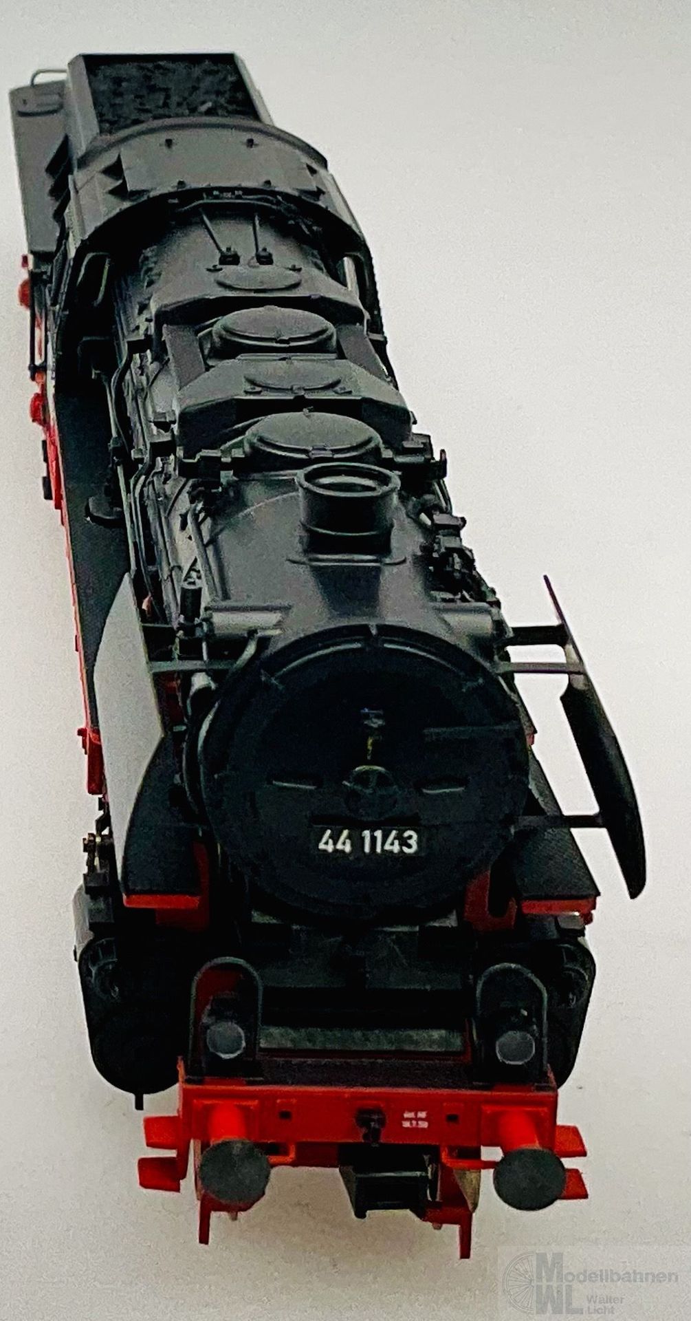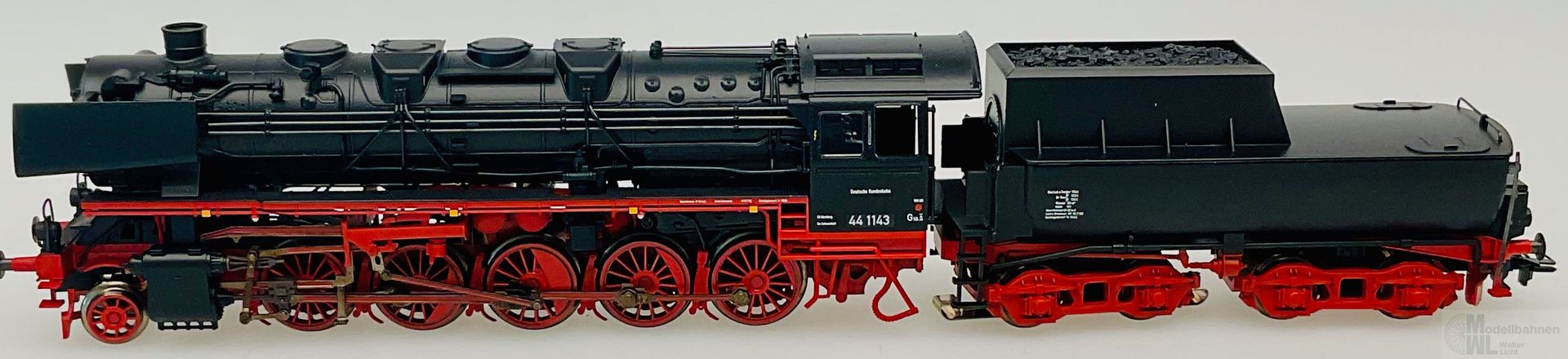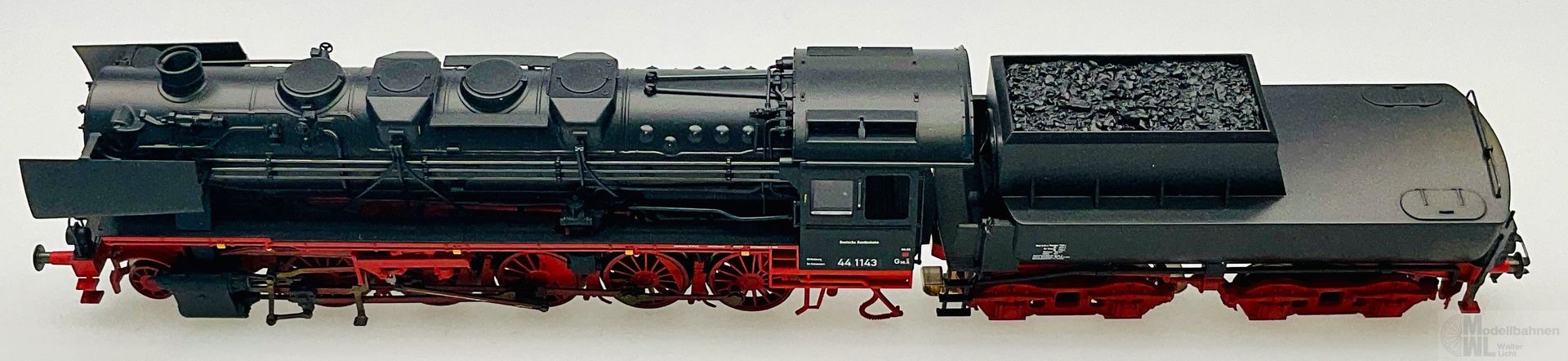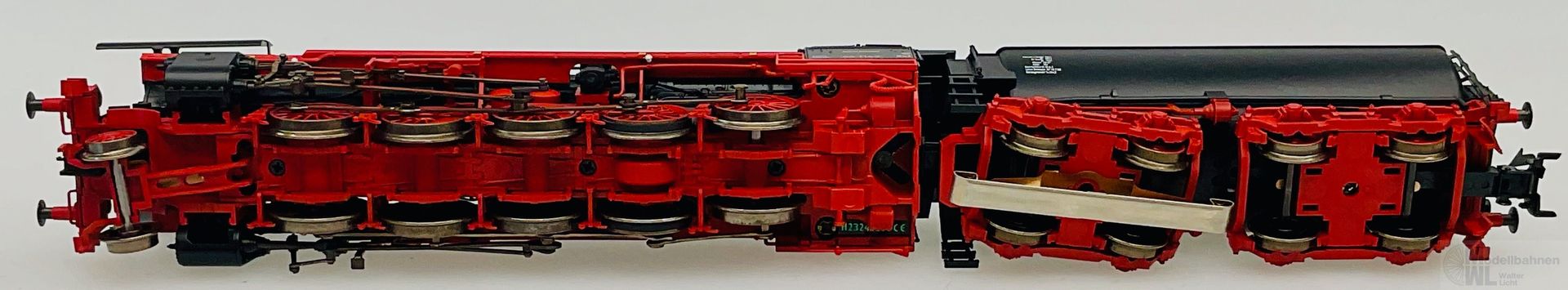 Modell: Mit Digital-Decoder mfx+ und umfangreichen Geräuschfunktionen. Geregelter Hochleistungsantrieb mit Schwungmasse im Kessel. 5 Achsen angetrieben. Haftreifen. Lokomotive und Wannen-Tender weitgehend aus Metall. Eingerichtet für Rauchsatz 7226. Fahrtrichtungsabhängig wechselndes Zweilicht-Spitzensignal und nachrüstbarer Rauchsatz konventionell in Betrieb, digital schaltbar. Führerstandbeleuchtung, Feuerbüchsenflackern und Flackern am Aschekasten zusätzlich jeweils separat digital schaltbar. Beleuchtung mit wartungsfreien warmweißen und roten Leuchtdioden (LED). Kurzkupplung mit Kinematik zwischen Lok und Tender. Hinten am Tender und vorne an der Lok kinematikgeführte Kurzkupplung mit NEM-Schacht. Befahrbarer Mindestradius 360 mm. Kolbenstangenschutzrohre, Bremsschläuche und Schraubenkupplungsimitationen liegen bei.