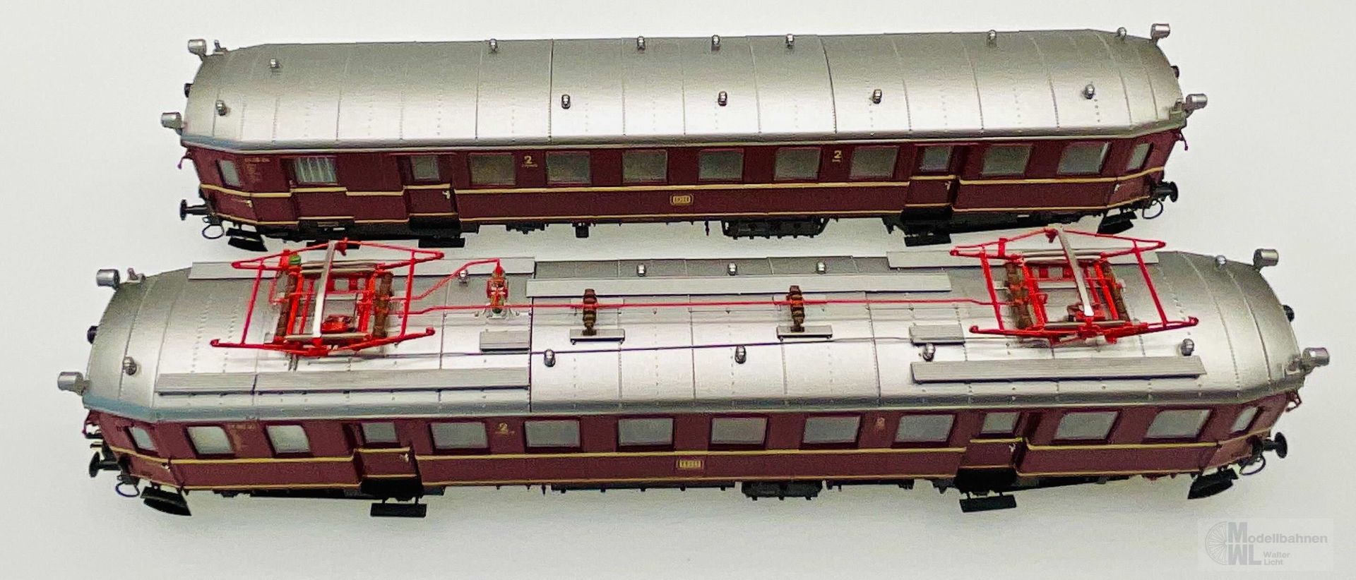 Triebwagen und Steuerwagen in unterschiedlicher und sehr detaillierter Ausführung.
