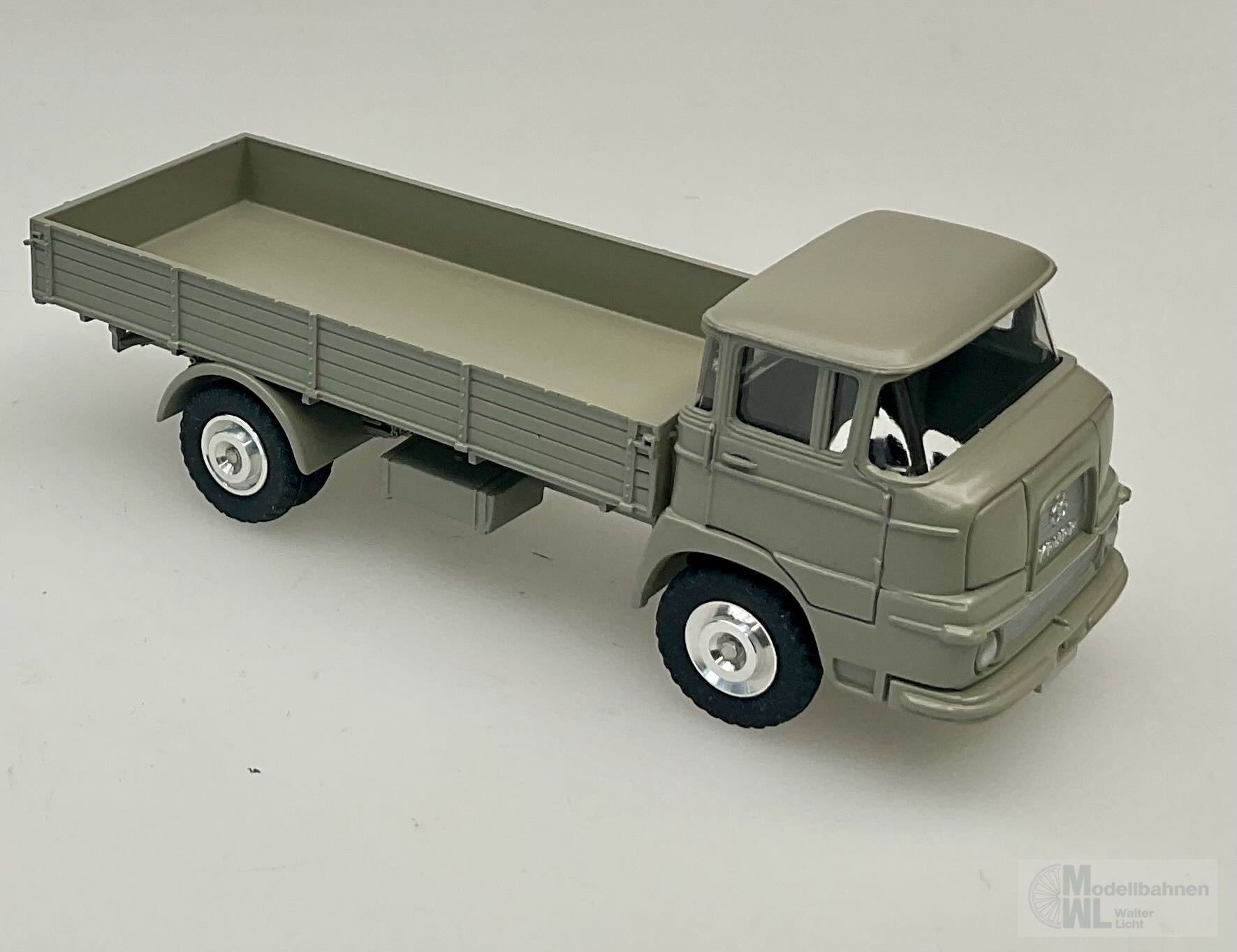 Modell: Aufbau des LKW aus Metall-Druckguss, Boden aus Stahlblech. Metallräder als Drehteile mit Gummireifen. Kühlergrill, Scheinwerfer und weitere Details farblich abgesetzt. Führerhaus mit Fenstereinsatz.