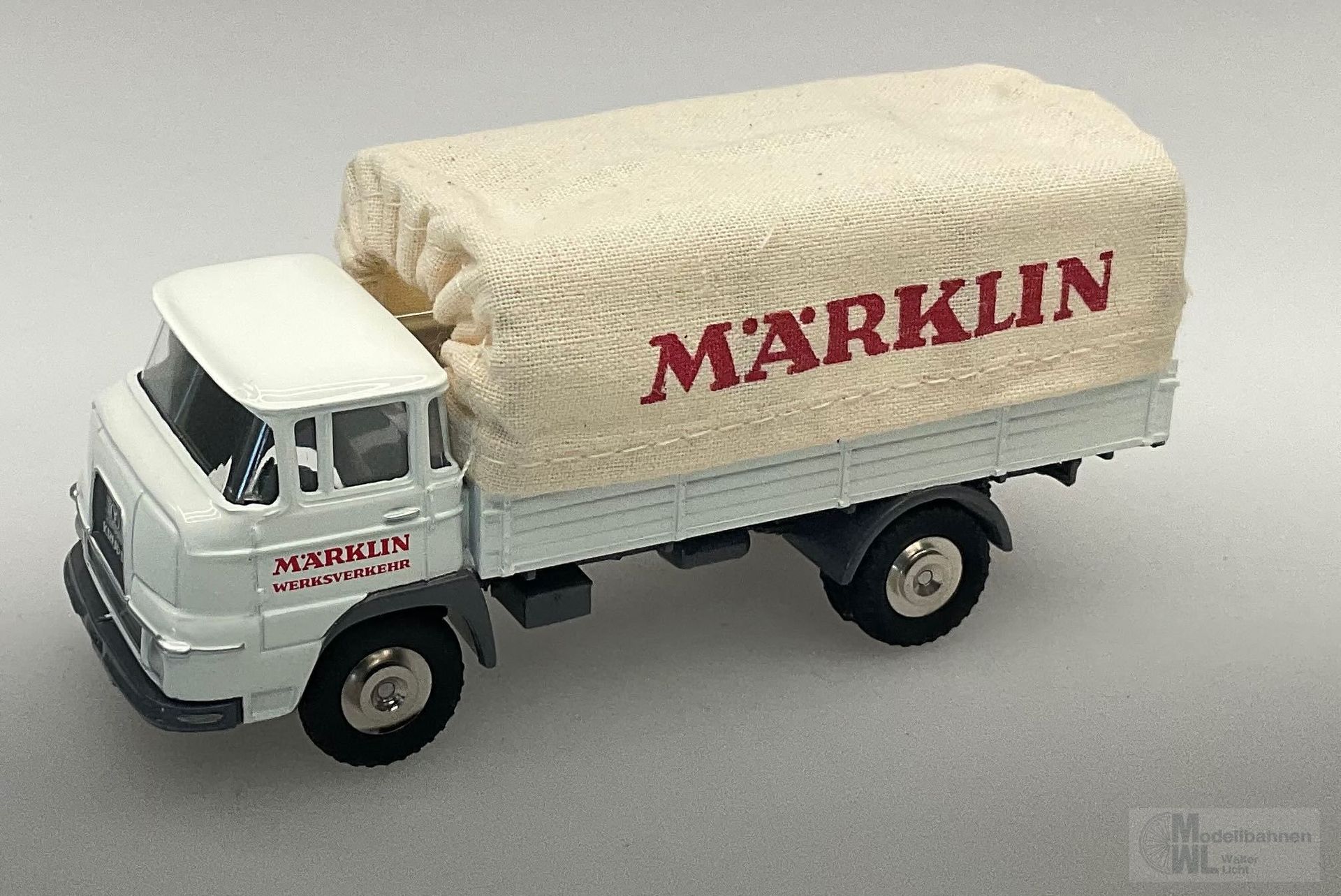 Modell: Baugröße ca. 1:45. Aufbau des LKW aus Metall-Druckguss, Boden aus Stahlblech. Metallräder als Drehteile mit Gummireifen. Kühlergrill, Scheinwerfer, Rücklichter und weitere Details farblich abgesetzt. Führerhaus mit Fenstereinsatz. Pritsche bestückt mit einem Planenaufbau. Passende Ergänzung zu den Modellen der Replika Serie und andere.