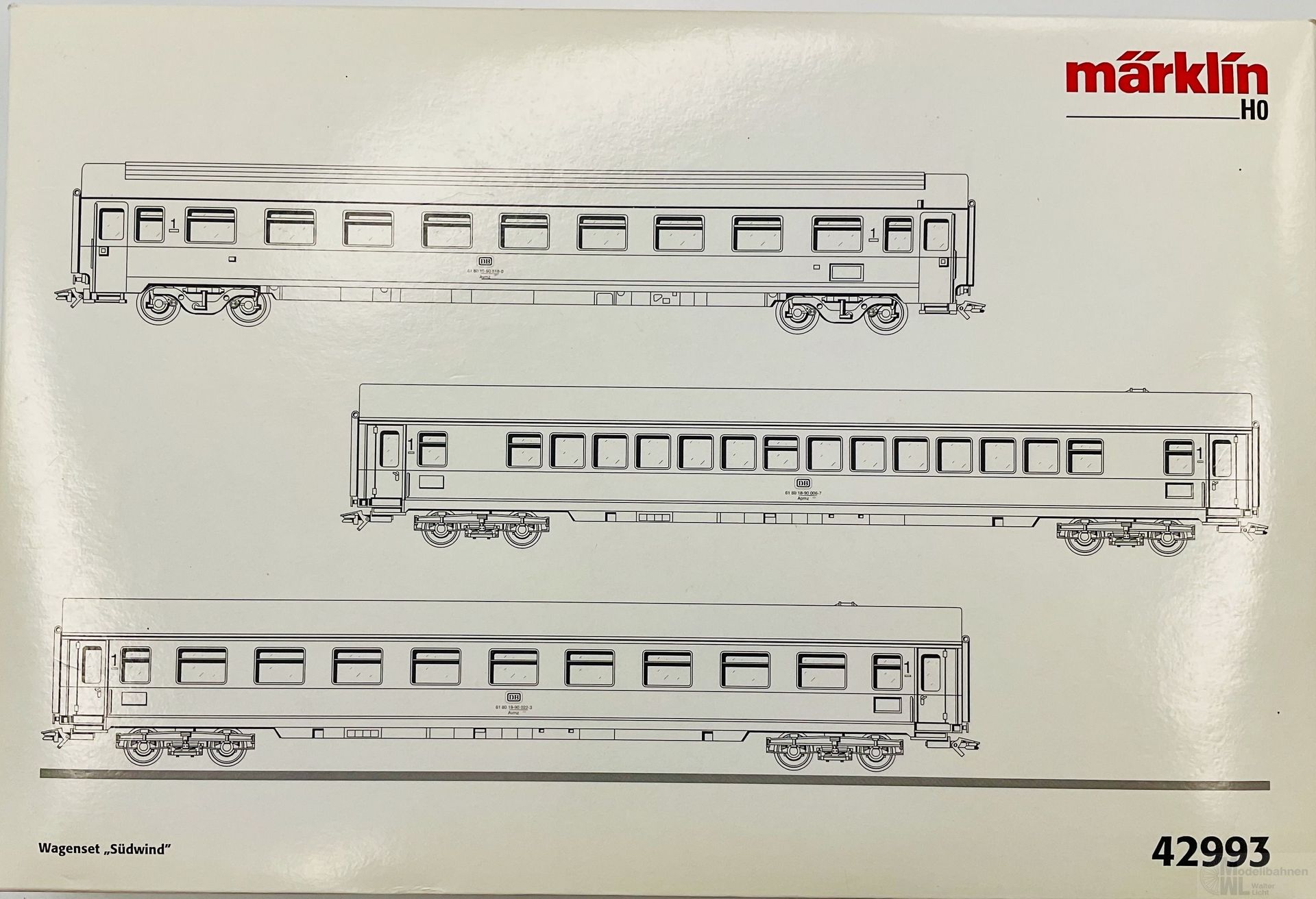 Produktinformationen "Märklin 42993 - MÄRKLIN - Personenwagen Set DB Ep.IV Südwind 3.tlg. H0/WS"