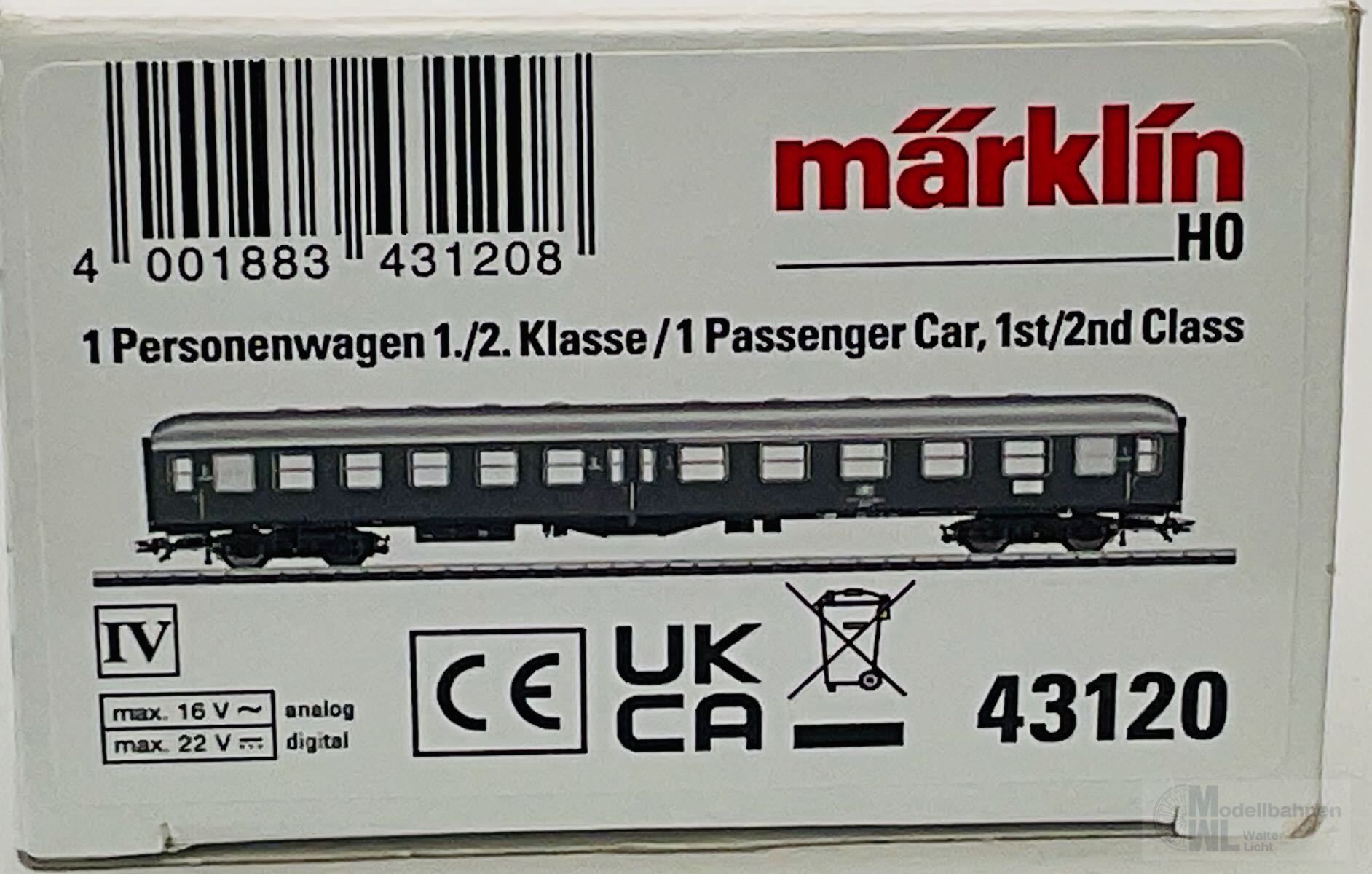 Produktinformationen "Märklin 43120 - MÄRKLIN - Eilzugwagen DB Ep.IV 1/2.Kl. H0/WS"
