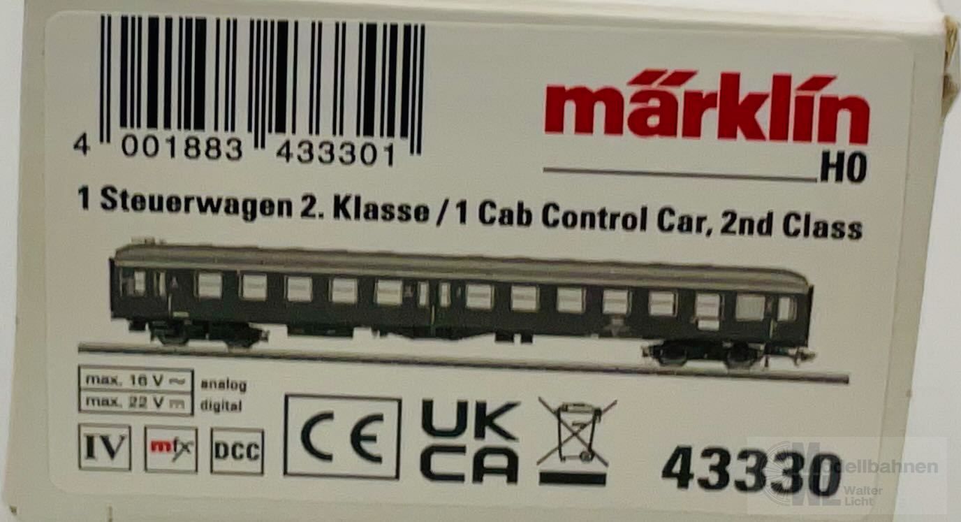 Produktinformationen "Märklin 43330 - MÄRKLIN - Steuerwagen DB Ep.IV 2.Kl.H0/WS"