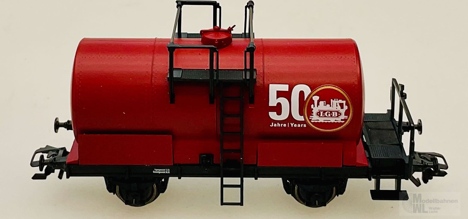 Modell: Dieses Modell erscheint zu Ehren des Jubiläums 50 Jahre LGB und zeigt die Verbundenheit der Marke Märklin mit LGB. Eine Seite des Löschwagens zeigt das Logo des 50-jährigen Jubiläums. Die andere Seite zeigt vorbildgerecht das Original des HSB-Wagens. Mit Bremserbühne. Gesamtlänge über Puffer 10,2 cm.