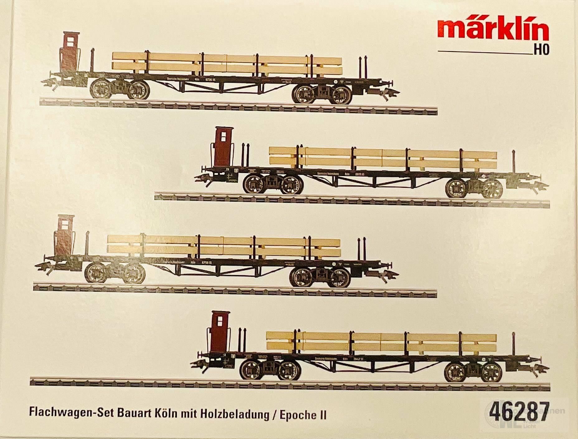 Produktinformationen "Märklin 46287 - MÄRKLIN - Flachwagen-Set K.Bay.Sts.B. Ep.I 4.tlg. mit Ladung H0/WS"