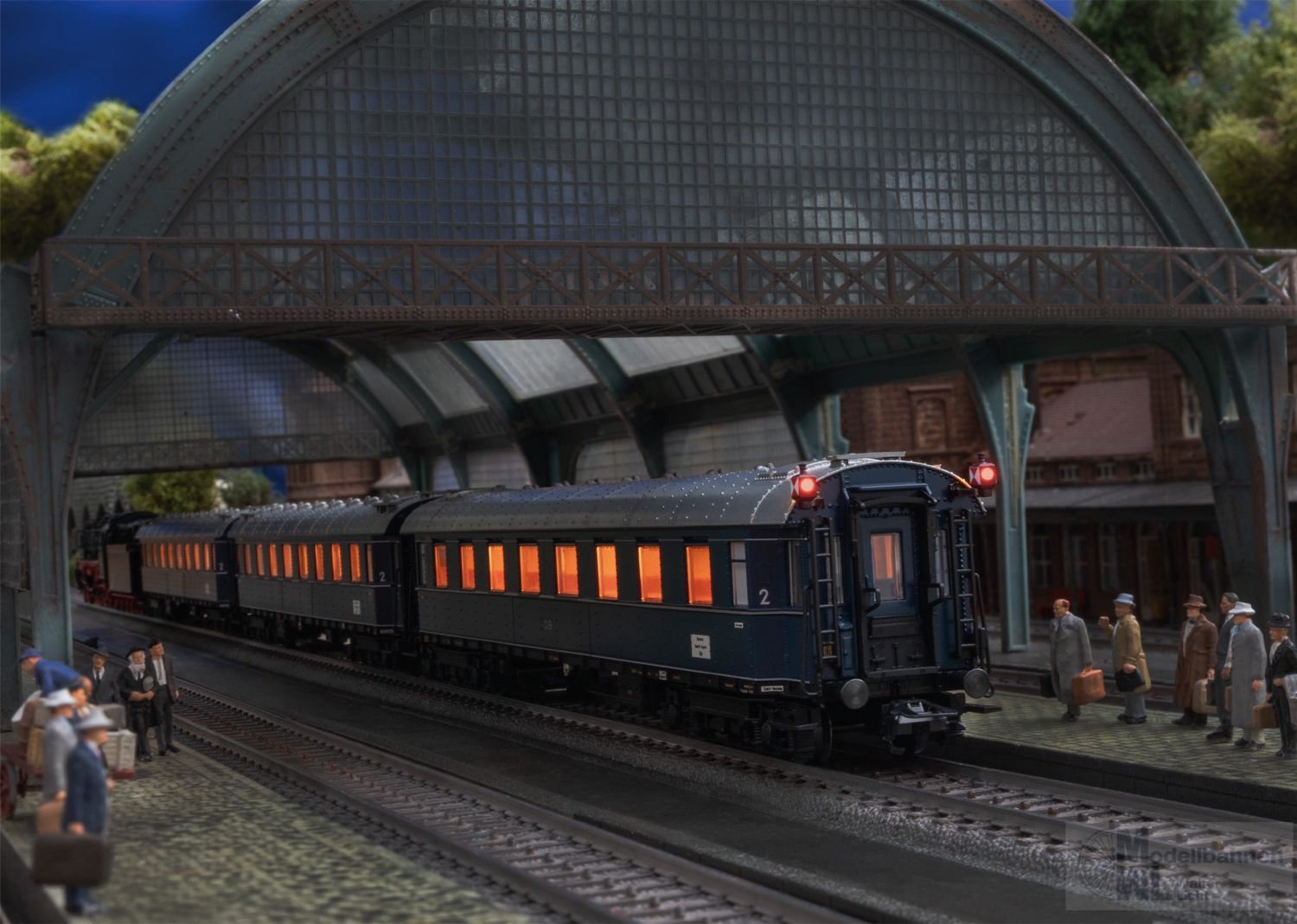 Vorbild: Drei Schnellzugwagen der Einheitsbauart 1928 bis 1930 (Verwendungsgruppe 29) der Deutschen Bundesbahn (DB). Drei Schnellzugwagen AB4ü-28, 1./2. Klasse. Zuglauf: Hannover - Hamm (W) – Wuppertal – Köln als F-Zug F 14 „Dom-Pfeil“. Stahlblaue Grundfarbgebung. Betriebszustand 1952.