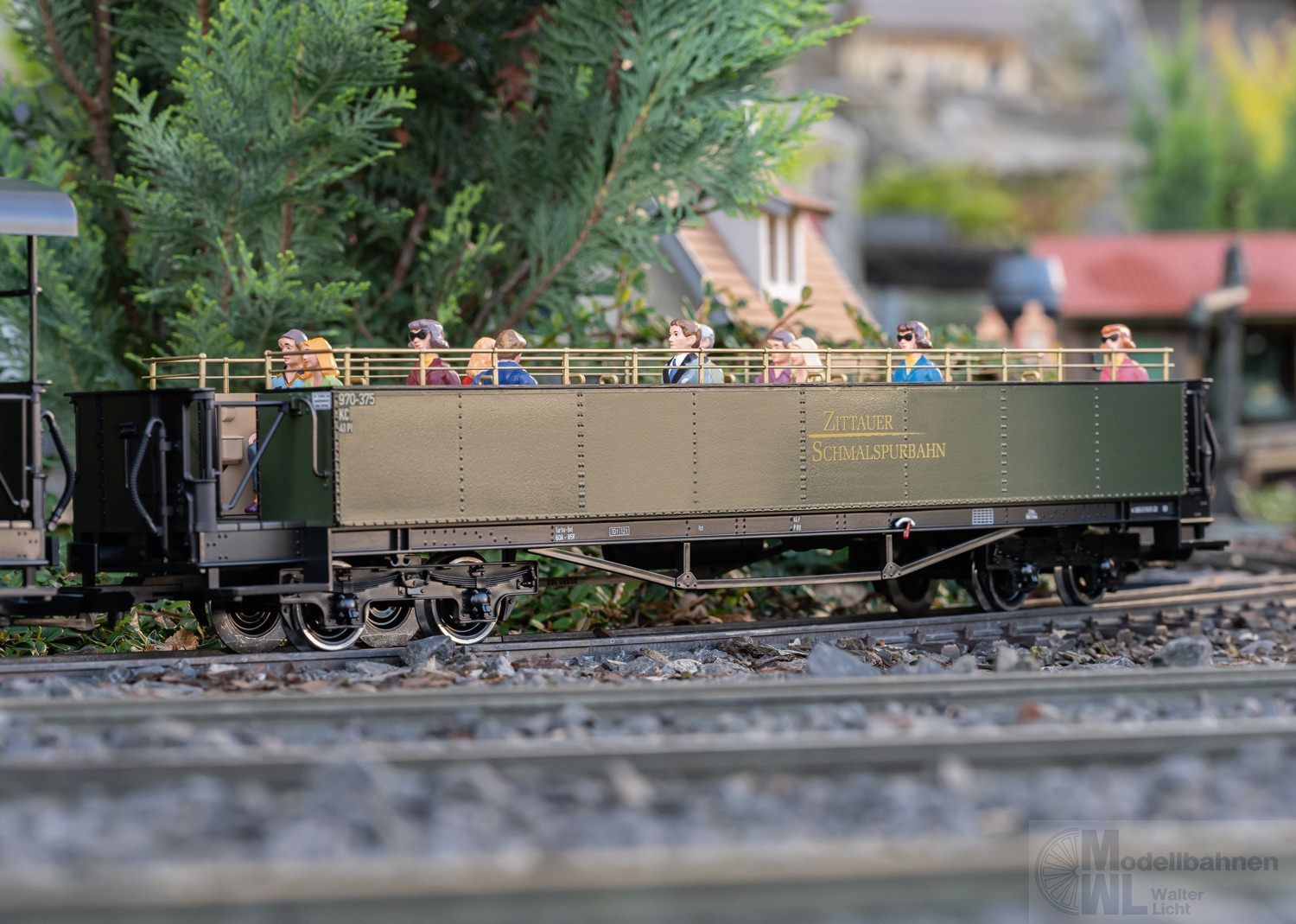 Club-Modell 2026 eines offenen Aussichtswagens der SOEG, wie er heute bei der Sächsisch Oberlausitzer Schmalspurbahn im Einsatz ist. Originalgetreue Farbgebung und Beschriftung der Epoche VI. Feindetaillierte, vorbildgetreue Inneneinrichtung. Mit eingebauten Figuren. Metallradsätze. Länge über Puffer 58 cm.