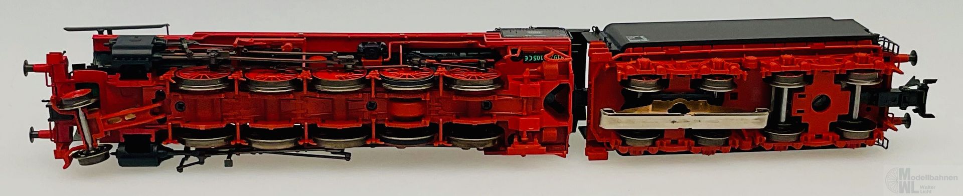 Modell: Mit Digital-Decoder mfx+ und umfangreichen Geräuschfunktionen. Geregelter Hochleistungsantrieb mit Schwungmasse im Kessel. 5 Achsen angetrieben. Haftreifen. Lokomotive und Öl-Tender weitgehend aus Metall. Eingerichtet für Rauchsatz 7226. Fahrtrichtungsabhängig wechselndes Dreilicht-Spitzensignal und nachrüstbarer Rauchsatz konventionell in Betrieb, digital schaltbar. Führerstandbeleuchtung zusätzlich digital schaltbar. Beleuchtung mit wartungsfreien warmweißen Leuchtdioden (LED). Kurzkupplung mit Kinematik zwischen Lok und Tender. Hinten am Tender und vorne an der Lok kinematikgeführte Kurzkupplung mit NEM-Schacht. Befahrbarer Mindestradius 360 mm. Kolbenstangenschutzrohre, Bremsschläuche und Schraubenkupplungsimitationen liegen bei.